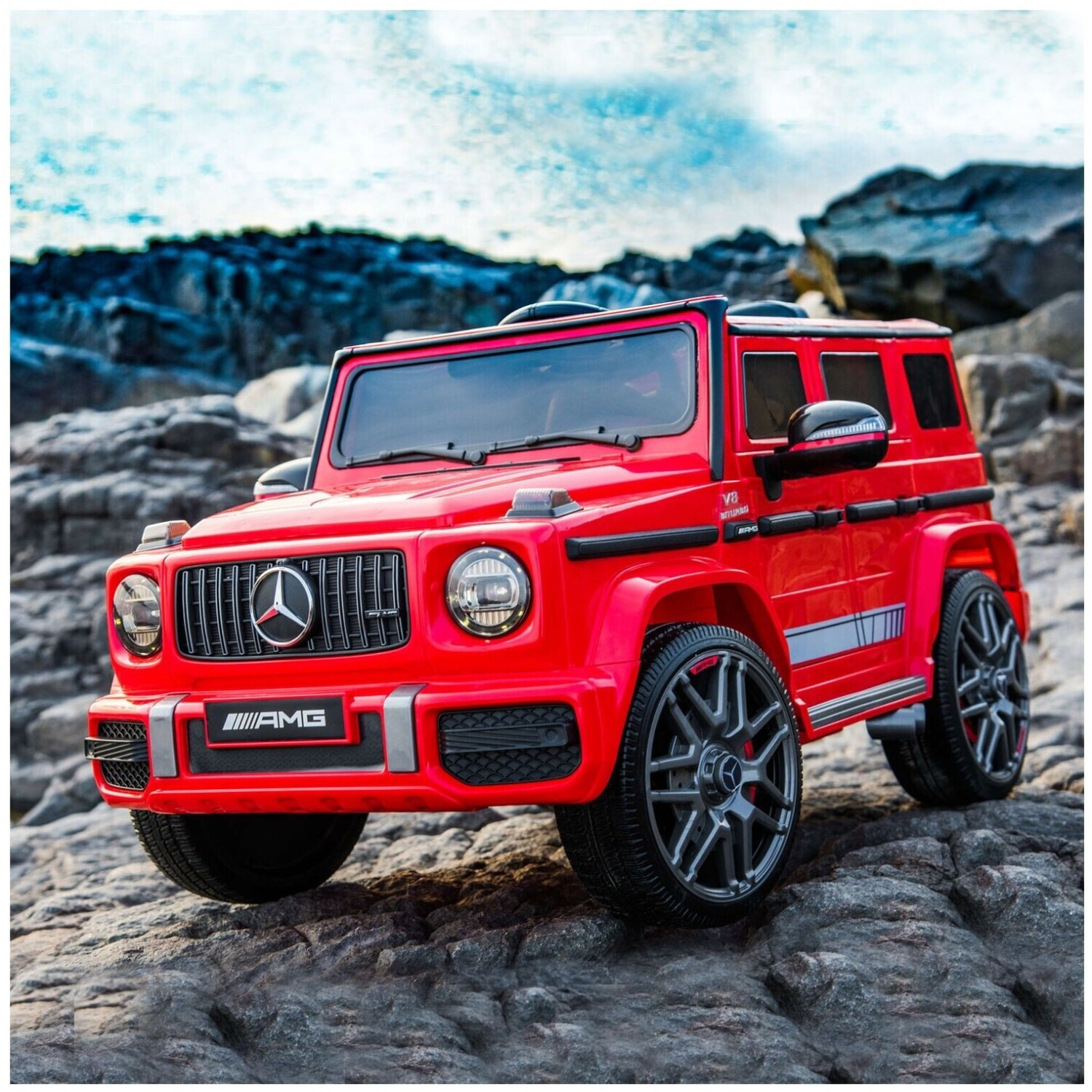 Echtes Mercedes-Feeling für die Kleinen! Dieses offiziell lizenzierte G63 AMG Elektroauto bringt Kinderaugen zum Leuchten. Mit 12V/2×25W Hochleistungsmotoren für bis zu 60 Minuten Fahrspaß. Inklusive 2,4G Fernbedienung für elterliche Kontrolle. Authentisches Design mit LED-Scheinwerfern, Hupe und Bluetooth-Musikfunktion. Drei Geschwindigkeitsstufen bis 3,5 km/h. Sicherheitsfeatures: Federungssystem, Sicherheitsgurt und doppelt verriegelbare Türen. Für Kinder ab 3 Jahren (max. 30 kg). Maße: 105,9 x 63,8 x 49 cm. Ideal für drinnen und draußen! Hinweis: Batterien für Fernbedienung nicht im Lieferumfang.