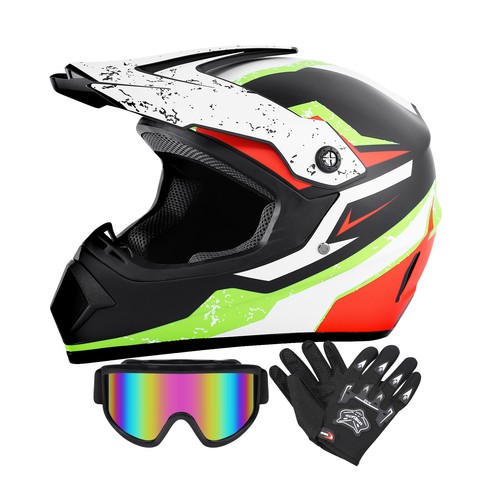Motorradhelm Fullface Für Kinder & Erwachsene | Motocross Helm Set Mit Brille & Handschuhen