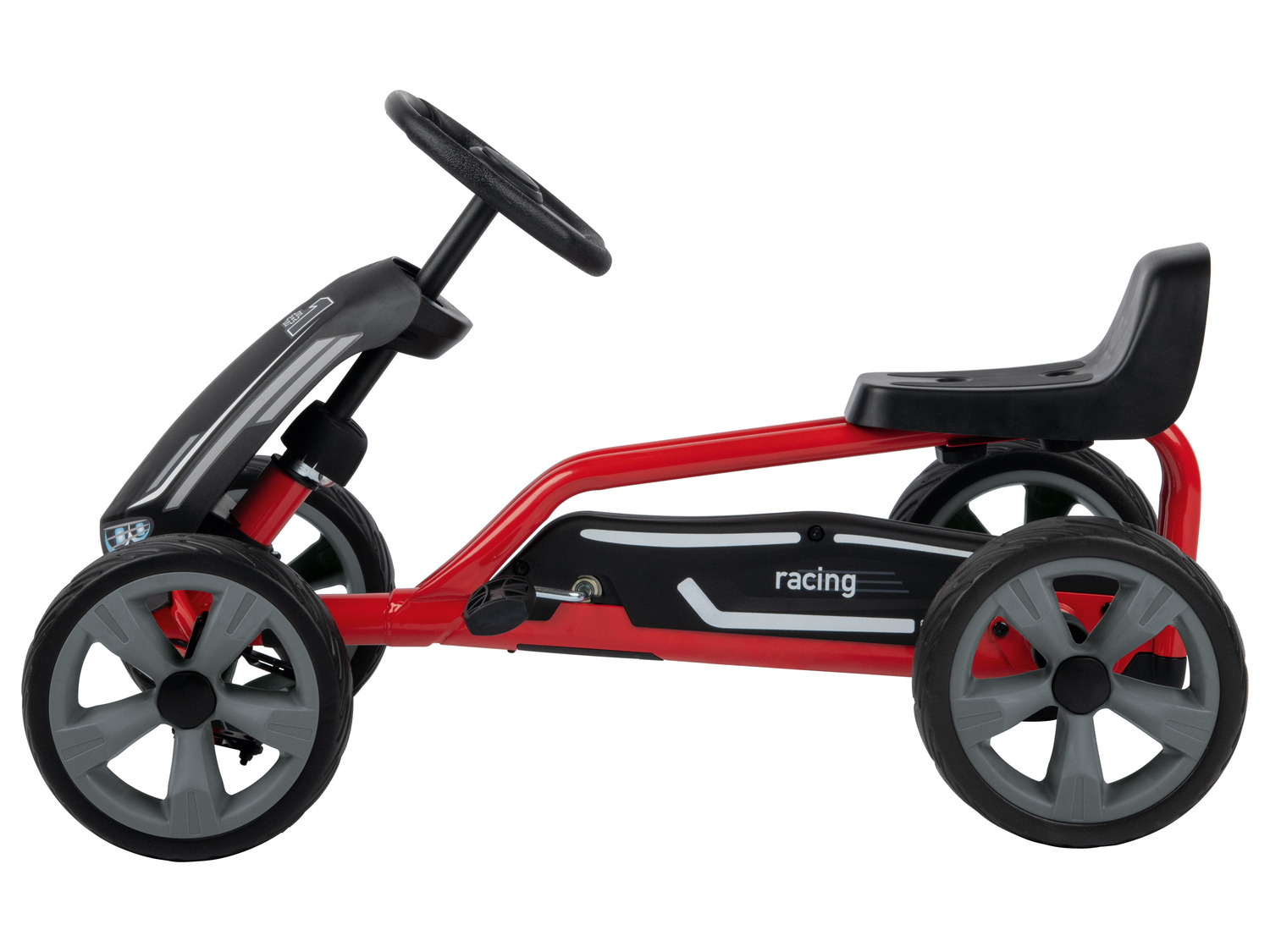 Voller Fahrspaß für die Kleinen! Dieses robuste Go-Kart begeistert mit einfacher Pedalbedienung und praktischer Handbremse. Besonders clever: Die Rückwärtsfunktion ermöglicht müheloses Manövrieren ohne Batterien oder Aufladen. Die vier leisen EVA-Räder sorgen für rutschfeste Fahrten auf Gehwegen und im Garten. Das stabile Metallchassis mit hochwertigem Kunststoff hält bis zu 30 kg aus und entspricht der Sicherheitsnorm EN 71. Mit den Maßen 85,5x49x57 cm ist es ideal für Kinder zwischen 95-115 cm Körpergröße. Einfache Montage - und schon kann der Fahrspaß beginnen! Perfekt für den Einsatz im Freien, fördert motorische Fähigkeiten und bringt Kinder in Bewegung. Das rote Design macht es zum absoluten Hingucker!