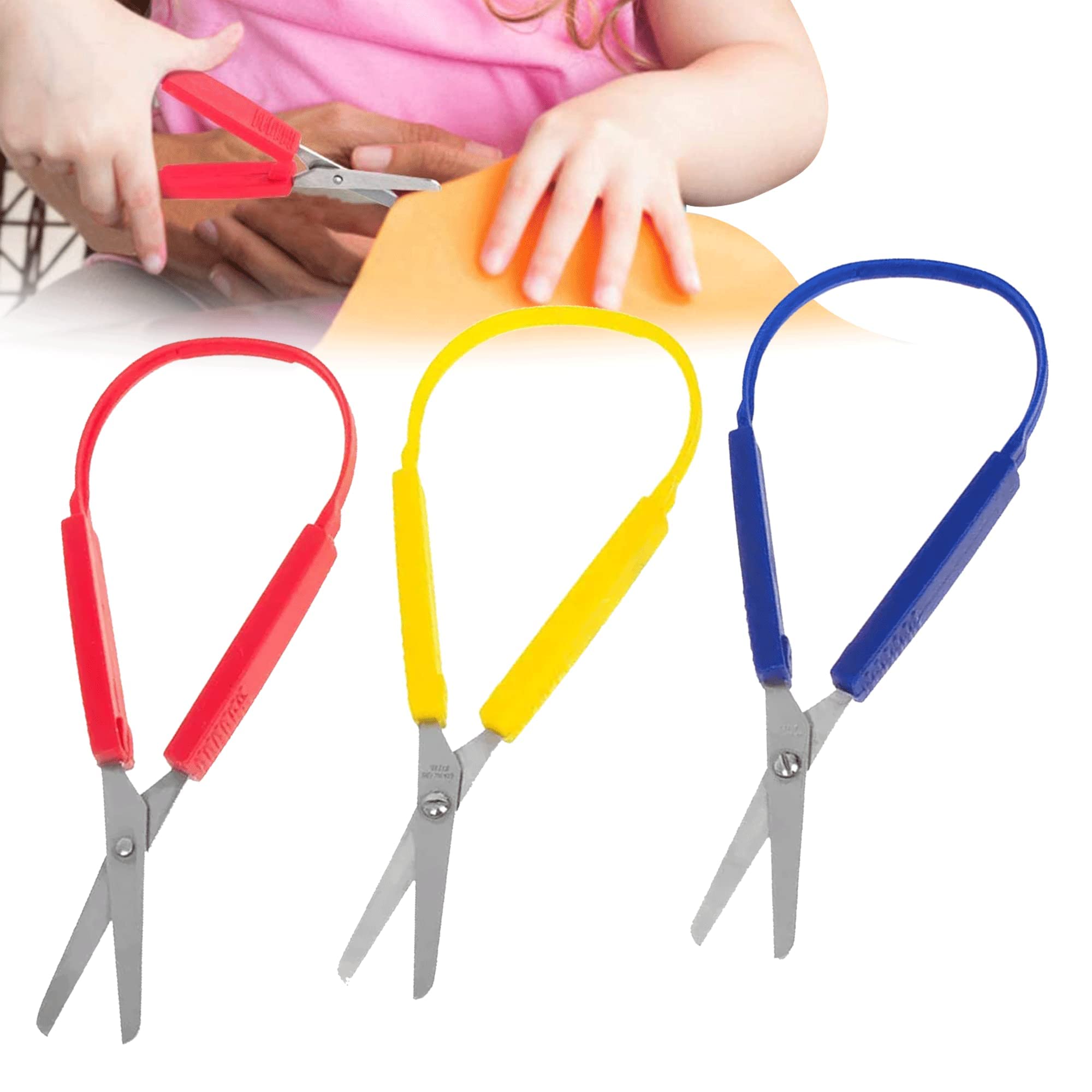 Perfekt für kleine Bastler! Diese 3 Schlaufenscheren machen das Schneidenlernen zum Kinderspiel. Mit speziellem Quetschgriff, der sich sowohl für Rechts- als auch Linkshänder eignet. Die Klingen aus Edelstahl sind rostfrei und genau scharf genug, um Papier zu schneiden, ohne zu gefährlich zu sein. Die bunten PP-Griffe in Blau, Rot und Gelb liegen gut in der kleinen Hand. Super für Kinder mit motorischen Schwierigkeiten oder besonderen Bedürfnissen. Ideal für Kindergarten, Schule oder daheim - immer unter Aufsicht natürlich! Jetzt kann der Bastelspaß beginnen!