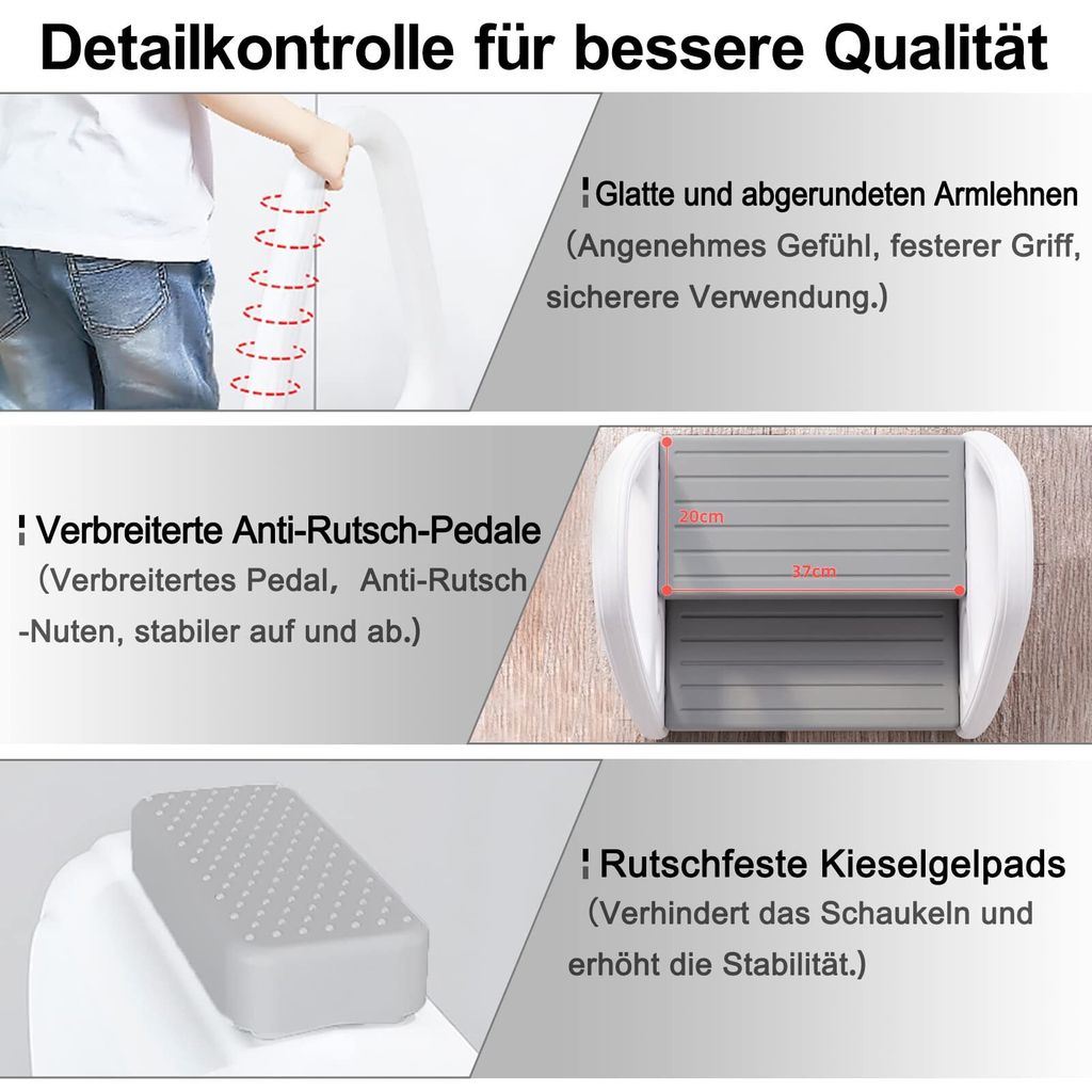 Hilf deinem Kind, die Welt zu entdecken! Dieser 2-stufige Tritthocker von LARS360 gibt Kindern ab 2-5 Jahren die Freiheit, selbstständig zu sein. Mit rutschfesten Stufen und integrierten Griffen für maximale Sicherheit. Die stabile Pyramiden-Form (45x39,5x61cm) trägt bis zu 50kg! Aus umweltfreundlichem PP-Material ohne scharfe Kanten. Perfekt fürs Badezimmer, Küche oder Wohnzimmer - ob Händewaschen, Zähneputzen oder Neugierde stillen. Einfach montiert und leicht zu tragen.