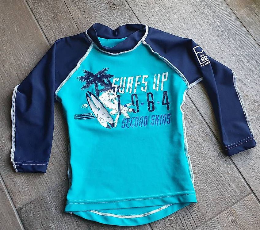 Perfektes UV-Shirt für deine Kids am Strand, See oder Pool! Dieses Langarm-Badeshirt schützt zuverlässig vor der Sonne und beugt Sonnenstich vor. Das spezielle Sonnenschutzgewebe ist super flexibel und hält auch bei häufigem Gebrauch lange. Es sitzt eng an (Slim Fit), aber nicht unangenehm - ideal zum Schwimmen lernen oder für lange Tage im Wasser. Wichtig: Bevor du bestellst, schau dir unbedingt die Größentabelle in den Produktbildern an! Wenn du zwischen zwei Größen schwankst, nimm lieber die größere - lieber etwas weiter als zu eng. Das Material trocknet relativ schnell und kratzt nicht auf der Haut. Perfekt für den Urlaub, Schwimmkurs oder einfach für heiße Sommertage. Deine Kinder können stundenlang planschen, ohne dass du dir Sorgen um Sonnenbrand machen musst. Das Shirt ist langlebig, behält seine Form und Farbe auch nach häufigem Waschen. Ein Must-Have für alle wasserbegeisterten Familien! Einfach anziehen und ab ins kühle Nass - ohne Eincremen und ohne Stress. Das Shirt macht das Schwimmenlernen einfacher, weil die Kids nicht so schnell frieren und besser im Wasser liegen. Absolute Empfehlung für den nächsten Strandurlaub!