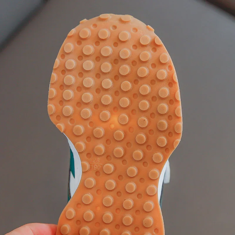 Perfekte Turnschuhe für deine Kids! Diese Allbestop Sneaker sind so leicht und bequem, dass deine Kinder sie am liebsten gar nicht mehr ausziehen wollen. Mit Mesh-Obermaterial sind sie super atmungsaktiv - keine schwitzigen Füße mehr, egal bei welchem Wetter.\n\nDer Klettverschluss ist genial: Selbst die Kleinsten kriegen das hin, die Schuhe anzuziehen. Und sie sitzen perfekt, ohne zu drücken. Die Sohle aus flexiblem Gummi gibt super nach und ist dabei rutschfest - ideal für Sport in der Halle oder zum Toben draußen.\n\nInnen ist weiches Textilfutter, das Schweiß aufsaugt und die Füße trocken hält. So vermeidest du Blasen und unangenehme Gerüche. Die Kids können rennen, springen, klettern - die Schuhe machen alles mit.\n\nDas Design ist modern und uni-sex, also für Jungen und Mädchen gleichermaßen geeignet. Perfekt für den Schulalltag, Sportunterricht oder einfach zum Spielen. Und weil sie so leicht sind, merken die Kinder kaum, dass sie überhaupt Schuhe tragen.\n\nReinigung? Kein Problem! Einfach abwischen oder bei Bedarf in der Maschine waschen. Praktisch, oder? Wenn du also nach nem Allrounder suchst, der Qualität hat und nicht die Welt kostet - hier ist er!