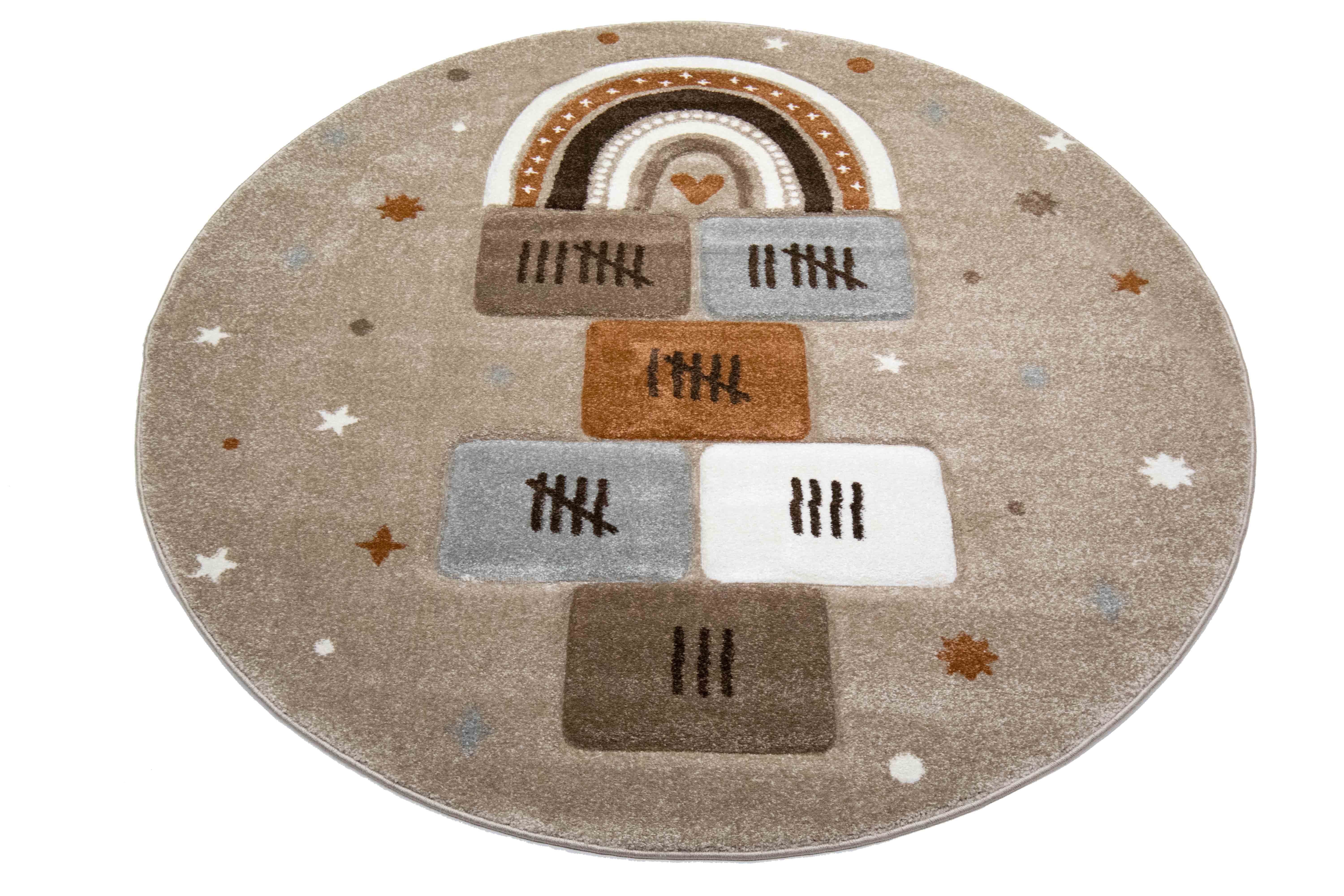 Teppich-Traum Kinderzimmer Teppich 160cm Rund - Hüpfspiel Mit Sternen Regenbogen Rosa Grün
