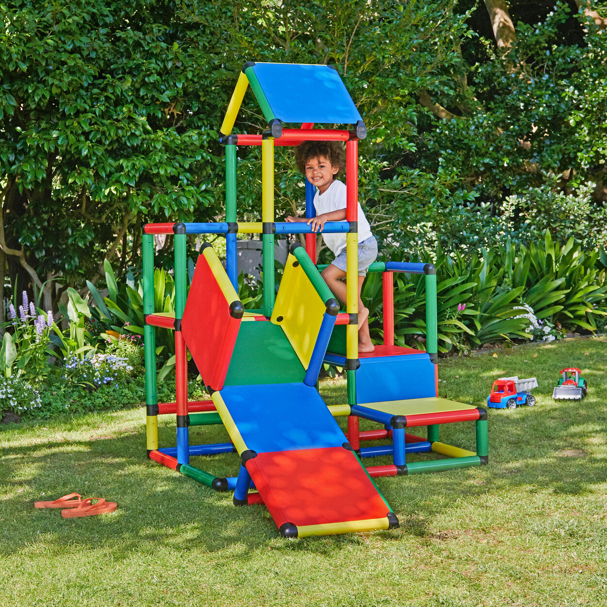 Willst du das QUADRO Klettergerüst deiner Kinder erweitern? Mit diesem Upgrade Kit wird's noch spannender! Das Set enthält flache Stufen (ca. 15 cm hoch) und Teile für coole Babyrutschen. So kannst du das Klettergerüst perfekt an das Alter und die Fähigkeiten deiner Kleinen anpassen. Das Beste: Alles lässt sich einfach zusammenstecken - ohne Sägen oder Bohren. Ob drinnen im Kinderzimmer oder draußen im Garten, die UV-stabilen Teile halten alles aus. Mit dabei sind 10 Platten, 2 Halbplatten, jede Menge Rohre in 15 cm und 35 cm Länge plus Verbinder und Kupplungen. Total sicher übrigens - TÜV/GS geprüft nach EN 71. Die rutschhemmenden Platten und abgerundeten Kanten geben dir ein gutes Gefühl. Und da QUADRO seit 1979 kompatible Systeme baut, passt das Kit zu allen alten und neuen Gerüsten. Made in Germany mit 9 Jahren Qualitätsversprechen!