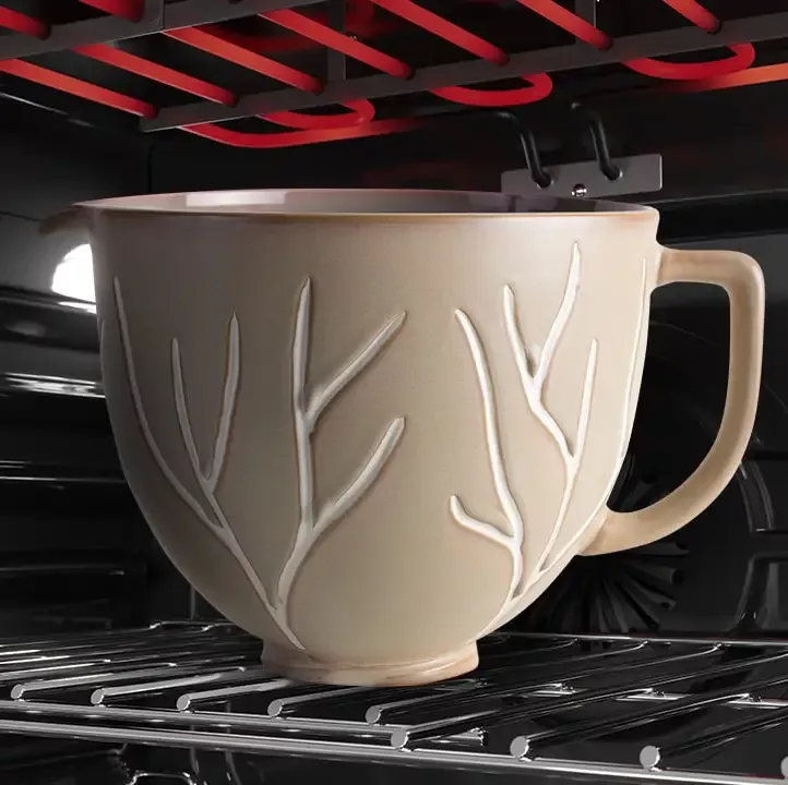 Wow, diese KitchenAid Keramikschüssel macht deine Küche gleich viel stylischer! Die matte weiße Keramik mit dem coolen 3D-Muster ist nicht nur hübsch anzusehen, sondern auch mega praktisch. Du kannst damit einfrieren, in der Mikrowelle erhitzen, in den Ofen bis 475°C - und natürlich spülmaschinenfest ist sie auch! Keine Angst vor Kratzern oder Flecken, die Keramik ist super robust. Passt perfekt auf alle KitchenAid Kippkopf-Standmixer mit 4,5-5 Quart Fassungsvermögen. Super praktisch: Du kannst Zutaten direkt aus der Schüssel in die Backform geben - weniger Sauerei! Ob du nun Butter weich machst, Schokolade temperierst oder einfach nur Teig anrührst - mit dieser Schüssel macht's gleich doppelt Spaß. Sieht aus wie von einem Profi-Koch, aber du kannst sie einfach so nachkaufen. Deine Küchencreations werden damit definitiv aufs nächste Level gehoben! Echt ein Must-Have für alle KitchenAid-Besitzer, die was Besonderes suchen.