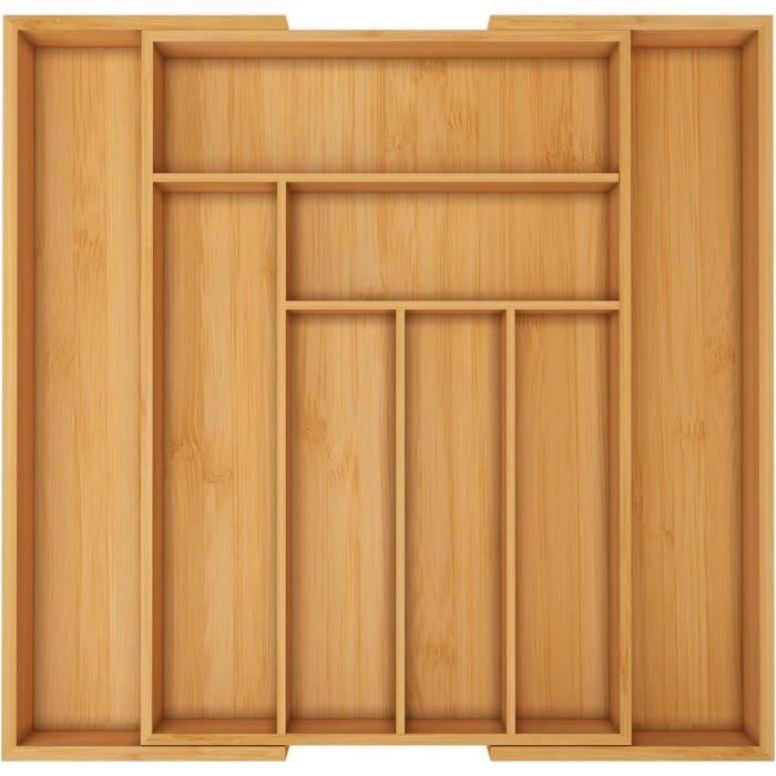 Endlich Ordnung in der Küchenschublade! Dieser Bambus-Organizer von KitchenEdge ist total clever - er lässt sich von 38cm bis 63cm verstellen und passt in fast jede Schublade. Mit 10 praktischen Fächern - 8 feste plus 2 verstellbare. Besonders tief (6,9cm) - da passt wirklich alles rein! Aus 100% Bambus mit Schwalbenschwanz-Verbindungen - super stabil und langlebig. Die rutschfesten Gummi-Pads verhindern Verrutschen. Perfekt für komplettes 12-teiliges Besteckset - Messer, Gabeln, Löffel alles getrennt. Macht jede Küche aufgeräumt und stylisch! Einfach reinschieben und sofort mehr Ordnung! Sieht nicht nur gut aus, sondern hält auch ewig. Deine Küche wird dich lieben!