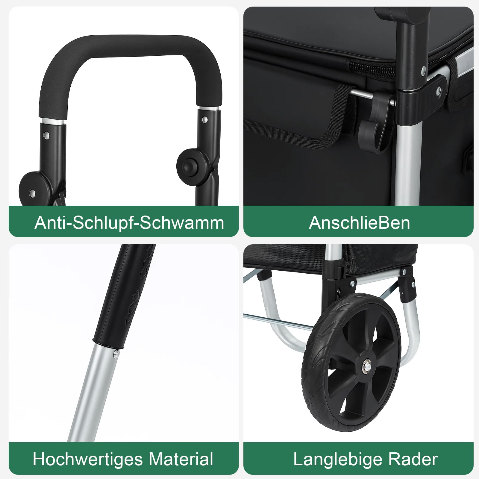 Maße: 43 × 33 × 97 cm - genau die richtige Größe für den Alltag. Ob Supermarkt, Wochenmarkt oder Ausflug - dieser Trolley ist euer bester Freund! Einfach ausklappen, beladen und entspannt nach Hause ziehen.