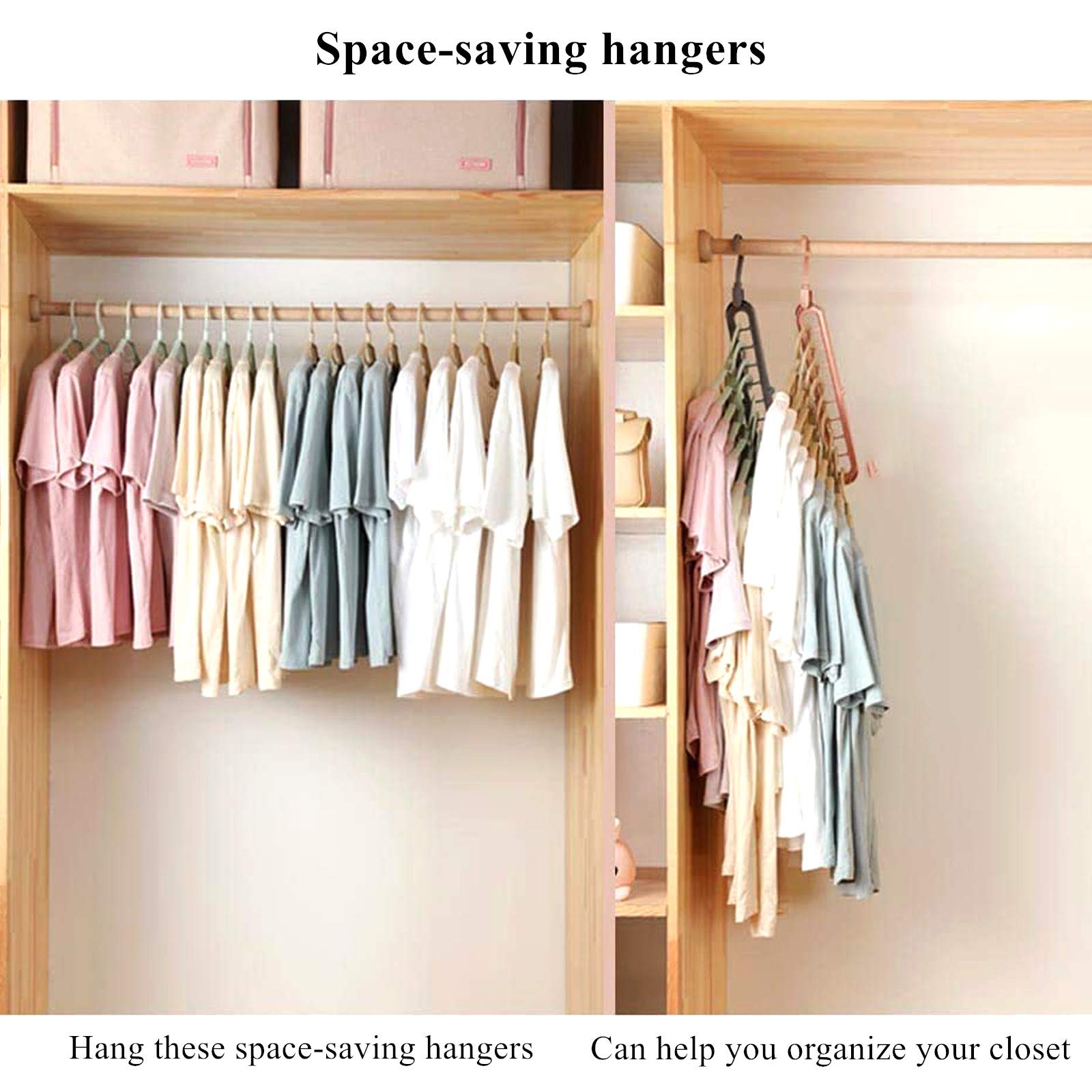 Platzproblem im Schrank? Diese Magic Kleiderbügel sind die Lösung! Im 5er-Set, jeder Bügel kann 9 Kleidungsstücke tragen. 360° drehbarer Haken - alles gut erreichbar. Aus hochwertigem PET-Kunststoff - stabil und geruchlos. Spart bis zu 80% Platz im Schrank! Glatte Kanten - keine Beschädigung der Kleidung. Perfekt für Mäntel, Hemden, Hosen, Kleider und Accessoires. Auch super für Reisen oder kleine Wohnungen. Einfach aufhängen und sich über den ordentlichen Schrank freuen. Macht das Anziehen morgens so viel einfacher!