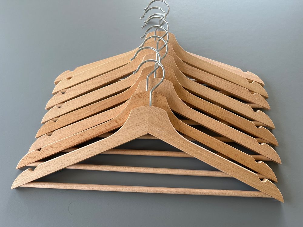 Ordnung im Puppenhaus! Diese 10 niedlichen Kleiderbügel aus Holz bringen System in die Puppengarderobe. Mit 15cm Länge und 2,5cm Breite perfekt geeignet für BJD-Puppen, Puppenhäuser und alle gängigen Spielzeugpuppen. Aus hochwertigem, naturbelassenem Holz gefertigt - robust und langlebig. Das schlichte Design ist funktional und sieht in jedem Puppenzimmer toll aus. Hilf deinen Kindern, die Puppenkleidung ordentlich zu verwahren oder nutze sie für deine Sammlerpuppen. Einfach die Kleidungsstücke aufhängen und schon bleibt alles sauber und knitterfrei. Das Must-Have Zubehör für jede Puppen-Liebhaberin!