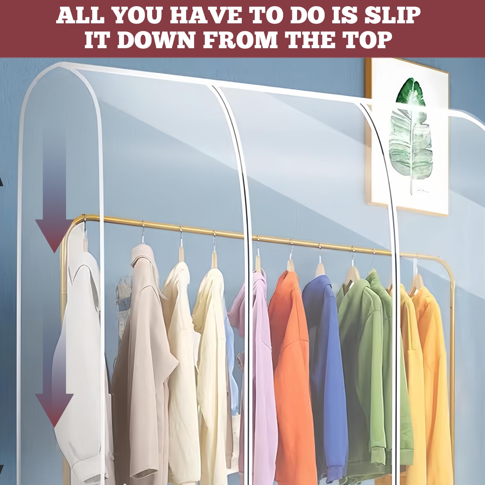 Schluss mit staubigen Kleidern! Diese praktische Abdeckung für deinen Kleiderständer hält Staub, Tierhaare und Feuchtigkeit fern. Mit 180x50x200 cm passt sie perfekt auf die meisten Kleiderständer - sogar auf doppellagige Modelle! Der doppelte Reißverschluss macht es super einfach, an alle Kleidungsstücke zu kommen, egal ob oben oder unten. Aus transparentem PEVA-Material siehst du sofort, was drin ist. Einfach mit einem feuchten Tuch abwischen und schon ist sie wieder sauber. Perfekt für Anzüge, Kleider, Mäntel, Jacken - alles bleibt frisch und sauber. Ob zu Hause oder im Geschäft - deine Kleidung verdient den besten Schutz! Einfach über den Ständer ziehen, Reißverschluss zu - und deine Lieblingskleidung ist sicher vor Staub und Schmutz.