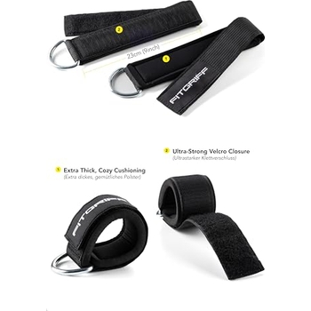 Perfekt für dein Beintraining! Diese verstellbaren Fußschlaufen sind ideal für Kabelzug-Geräte und Functional Trainer. Im Set erhältst du 2 Stück in Schwarz, die sich durch Klettverschluss an jede Knöchelgröße anpassen lassen. Die starken, verdickten Stahl-Doppel-D-Ringe sorgen für sichere Befestigung und gleichmäßige Gewichtsverteilung. Besonders bequem durch atmungsaktive, weiche Polsterung und gebogene Manschetten - selbst bei intensivem Training bleibt es angenehm. Perfekt für Beindehnungen, Beinbeuger, Hüftentführung und alle Übungen für Unterkörper und Hüfte. So erreichst du gezielt deine Beinmuskulatur und formst deine Traumfigur. Einfach anlegen, einstellen und loslegen - ohne Zeit mit lästigem Lockern zu verschwenden. Das ultimative Zubehör für jedes Fitnessstudio oder Home-Gym!