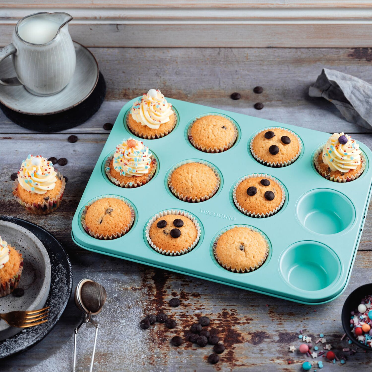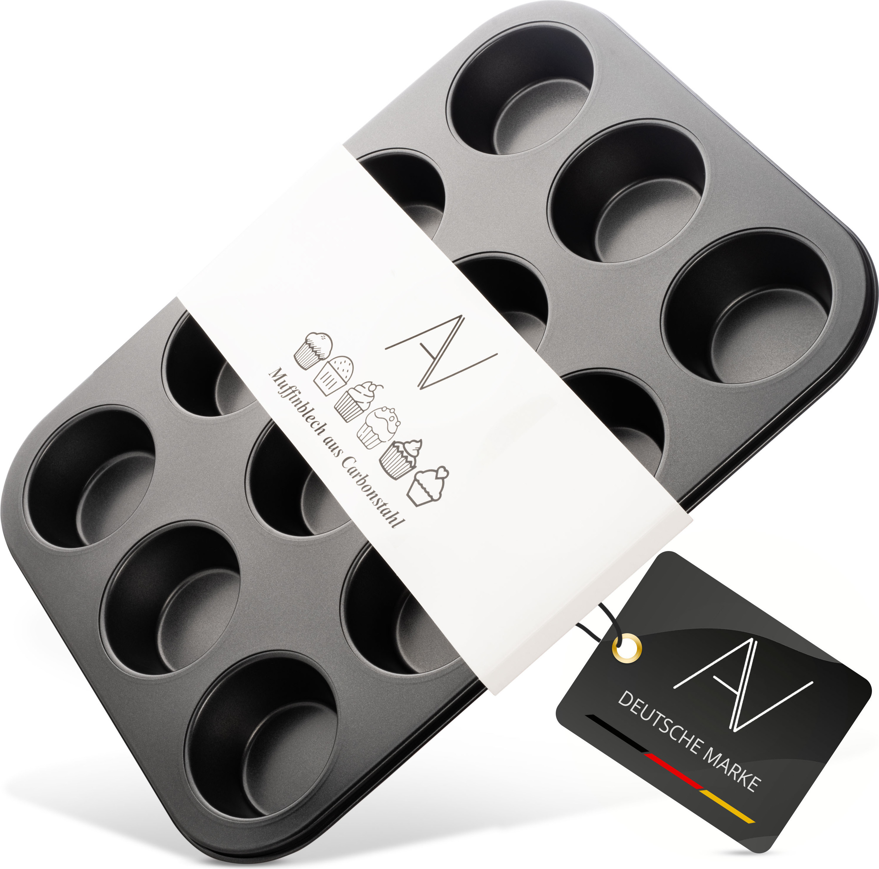 Backvergnügen pur mit diesem hochwertigen Muffinblech-Set von BEWOS! Im Set enthalten: 2 robuste Muffinbleche aus Kohlenstoffstahl (je 12 Vertiefungen) plus 24 bunte Silikonbackformen in 6 verschiedenen Farben. Das Kohlenstoffstahl-Blech sorgt für perfekte Wärmeverteilung - deine Muffins werden gleichmäßig goldbraun ohne Verbrennungen. Die Silikonformen machen das Entformen zum Kinderspiel - nichts klebt mehr an! Mit Maßen von 35x26,5x3cm passt das Blech in jeden Backofen. Spülmaschinenfest bis 200°C - einfach reinigen und wieder verwenden. Perfekt nicht nur für Muffins, sondern auch für Cupcakes, Brownies, Mini-Kuchen und vieles mehr. Die Bleche lassen sich platzsparend stapeln. Ein Must-Have für jede Backbegeisterte!