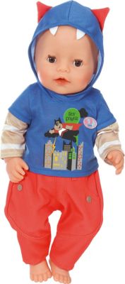Achtung, Superhelden im Anmarsch! Die BABY born Jungs Kollektion bringt actionreichen Spaß ins Kinderzimmer. Mit den coolen tierischen Super-Helden Aufdrucken wird jeder Tag zum Abenteuer. Die bequemen Hosen in Orange oder Beige lassen deinen kleinen Helden ganz schnell auf Bäume klettern. Und wenn die Schwester mal wieder nervt? Einfach die coole Kapuze des Shirts überziehen und die Drachenzähne zeigen! Die Kleidung im praktischen Lagenlook ist nicht nur super stylisch, sondern auch bequem zu tragen. Perfekt für den Spielplatz, Kindergarten oder einfach zum Toben zu Hause. Übrigens: Das Set kommt von Zapf, den Experten für qualitativ hochwertiges Spielzeug. Wichtig: Nicht geeignet für Kinder unter 3 Jahren - aber danach umso besser!