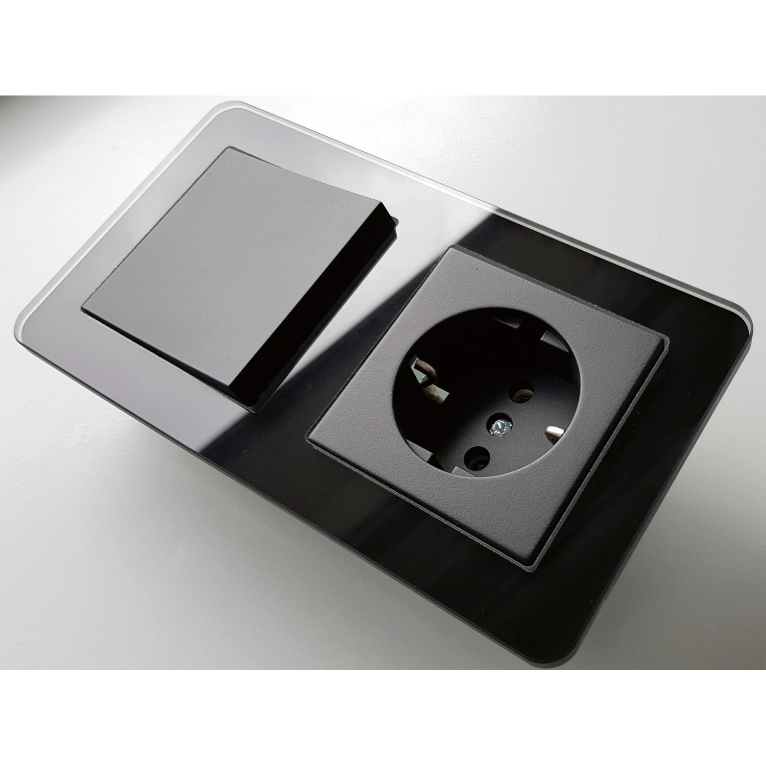 Deutsches Design meets Alltagspraxis! Dieser PULSAR Wechselschalter mit Steckdose in schwarzem Glas setzt stylische Akzente in Wohnung, Bad oder Küche. Mit 157 x 86 mm passt er perfekt in jede Unterputzdose. Die Kindersicherung schützt neugierige Finger, während die Staubschutzklappe die Kontakte sauber hält. Aus 4 mm gehärtetem Glas und feuerfestem Kunststoff ist die Kombination kratzfest und leicht zu reinigen. Einfache Montage mit Schraubklemmen - auch für Laien machbar. Perfekt fürs Homeoffice, Flur oder Gäste-WC. Die edle Optik macht jeden Raum gleich viel hochwertiger. Und falls mal was danebengeht: Ein feuchter Lappen genügt. Deutsche Verarbeitung, langlebig und täglich mehrmals schaltbar. Für 110-250V und bis 16A geeignet. Modern, sicher und einfach schön!