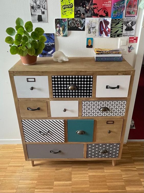 Ordnung muss sein! Diese elegante Kommode in Hochglanz-Schwarz bringt Stil und Stauraum in dein Zuhause. Mit 6 geräumigen Schubladen hast du endlich Platz für Klamotten, Dokumente, Accessoires - was auch immer Chaos verursacht. Die Maße 100x34x73cm sind ideal für kleinere Räume, ohne auf Stauraum zu verzichten. Aus stabilem Holz gefertigt, hält sie auch bei täglicher Nutzung was aus. Der Aufbau ist echt einfach - die Anleitung führt dich Schritt für Schritt durch den Prozess. Perfekt fürs Schlafzimmer, Wohnzimmer oder als Ablage im Home-Office. Das moderne Design mit den glänzenden Oberflächen wirkt total hochwertig und zeitgemäß. Nie wieder suchen - alles hat seinen Platz! Ob als Ergänzung zu deinem Bett oder als eigenständiges Möbelstück, diese Kommode macht einfach eine gute Figur und bringt Ordnung in dein Leben.