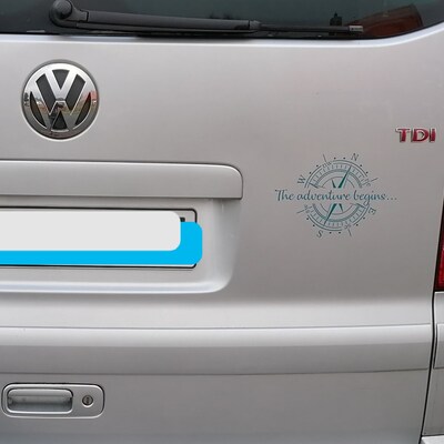 Mit 10x10 cm Größe ist er gut sichtbar, aber nicht zu aufdringlich. Der Kompass selbst ist nur wenige Millimeter kleiner als die Folie - sieht richtig professionell aus.