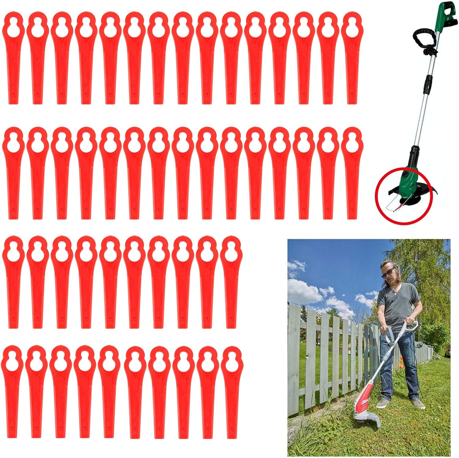 • 50x Rasentrimmer Messer Kompatibel Mit Gardena - Kunststoff Ersatzmesser