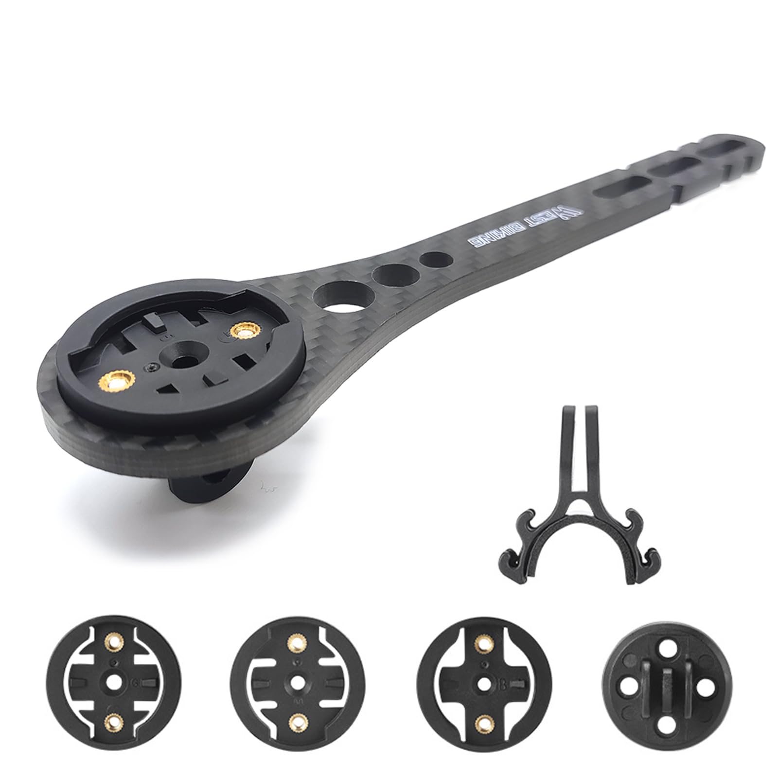 Dein Fahrradcomputer hat endlich den perfekten Platz! Diese Carbon-Fahrradcomputer-Halterung ist super leicht, aber extrem stabil und hält auch bei holprigen Strecken sicher. Kompatibel mit fast allen gängigen Modellen: Garmin Edge 130, 530, 540, 800, 830, 840, 1000, 1030, 1040 Plus, Edge Explore 2 und Wahoo Elemnt Roam, Bolt v2, Mini. Sogar für iGPSPORT, XOSS, Magene und andere Marken geeignet. Das vollintegrierte Design reduziert den Windwiderstand, sodass du schneller und mit weniger Kraftaufwand fahren kannst. Mit dem Langloch-Einzelschlitz-Design kannst du die Installationslänge flexibel anpassen. Die Montage dauert weniger als 60 Sekunden - einfach am Lenker befestigen, Mutter festziehen und fertig! Im Lieferumfang ist alles enthalten, was du brauchst: 1x Halterung, 1x Gummiband, 3x Basis, 1x Kameraständer, 2x Schraubenschlüssel, 1x Lichtstativ und 1x Schraubensatz. Mit 166 mm Länge passt die Halterung perfekt an deinen Lenker. Aus hochwertiger Carbonfaser gefertigt, ist sie nicht nur leicht, sondern auch super langlebig. Egal ob Rennrad, Mountainbike oder Citybike - mit dieser Halterung ist dein GPS immer sicher und gut lesbar platziert!
