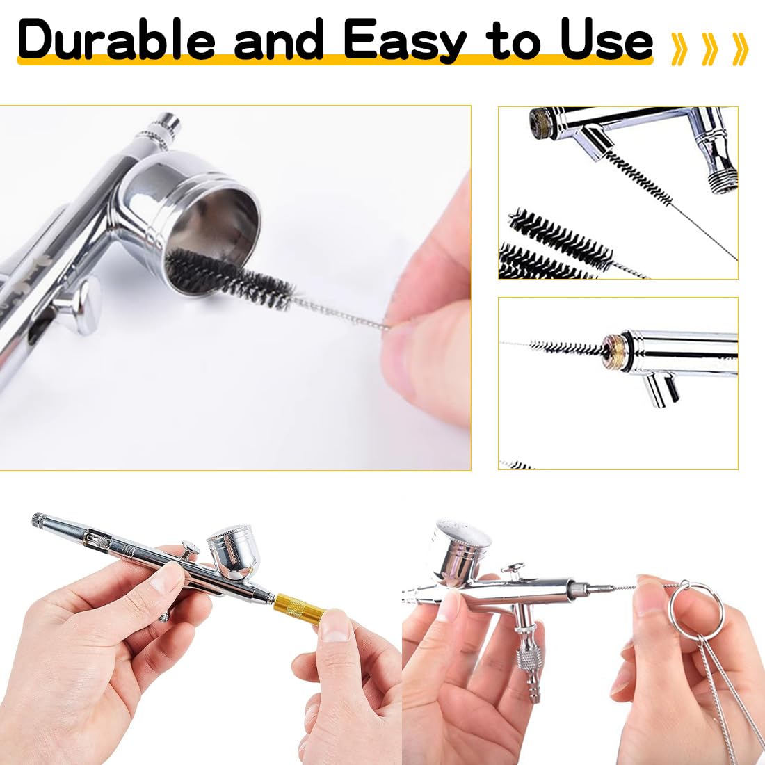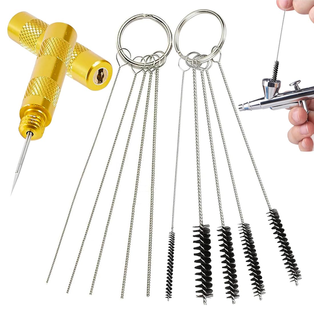 Perfekte Reinigung für deine Airbrush! Dieses Komplett-Set hat alles, was du brauchst, um deine Spritzpistole blitzblank zu bekommen. Mit 5 verschiedenen Bürsten und 5 Nadeln in unterschiedlichen Stärken erreichst du auch die engsten Stellen. Die Edelstahl-Nadeln entfernen selbst hartnäckige Farbrückstände, und die Nylon-Bürsten sind schonend zu deinem Equipment.
