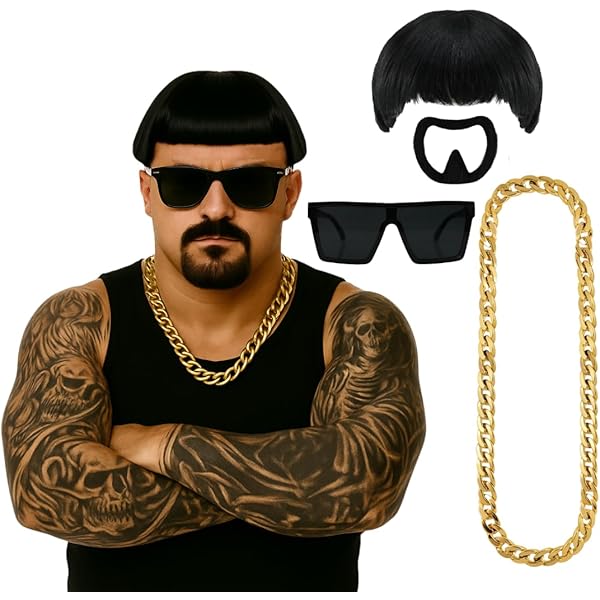 Alter, dieses Final Boss Meme Kostüm ist der absolute Hammer für jede Party! Stell dir vor: Du kommst an mit ner schwarzen Bowl-Cut-Perücke, ner klobigen Goldkette, ner Retro-Sonnenbrille, nem Ziegenbart und fake Tattoo-Ärmeln – und schon bist du der Ibiza Final Boss! Das Set ist komplett, also musst du nix extra kaufen. Einfach anziehen, und du siehst aus wie das legendäre Internet-Meme. Perfekt für Halloween, Festivals, Raves oder Junggesellenabschiede – überall, wo es bunt und lustig zugeht. Die Perücke ist leicht, die Sonnenbrille sitzt gut, und die Tattoo-Ärmel sehen aus wie echt, sind aber nur zum Überziehen. Das Beste: Die Größe passt für die meisten Erwachsenen, also egal ob Mann oder Frau – hier kann jeder mitmachen. Du willst der Hit auf der Party werden? Dann ist das hier dein Ticket! Einfach anziehen, losgehen und alle werden dich feiern. Und keine Sorge, das Outfit ist bequem genug, um die ganze Nacht durchzuhalten. Also, worauf wartest du? Hol dir den Meme-Spaß!