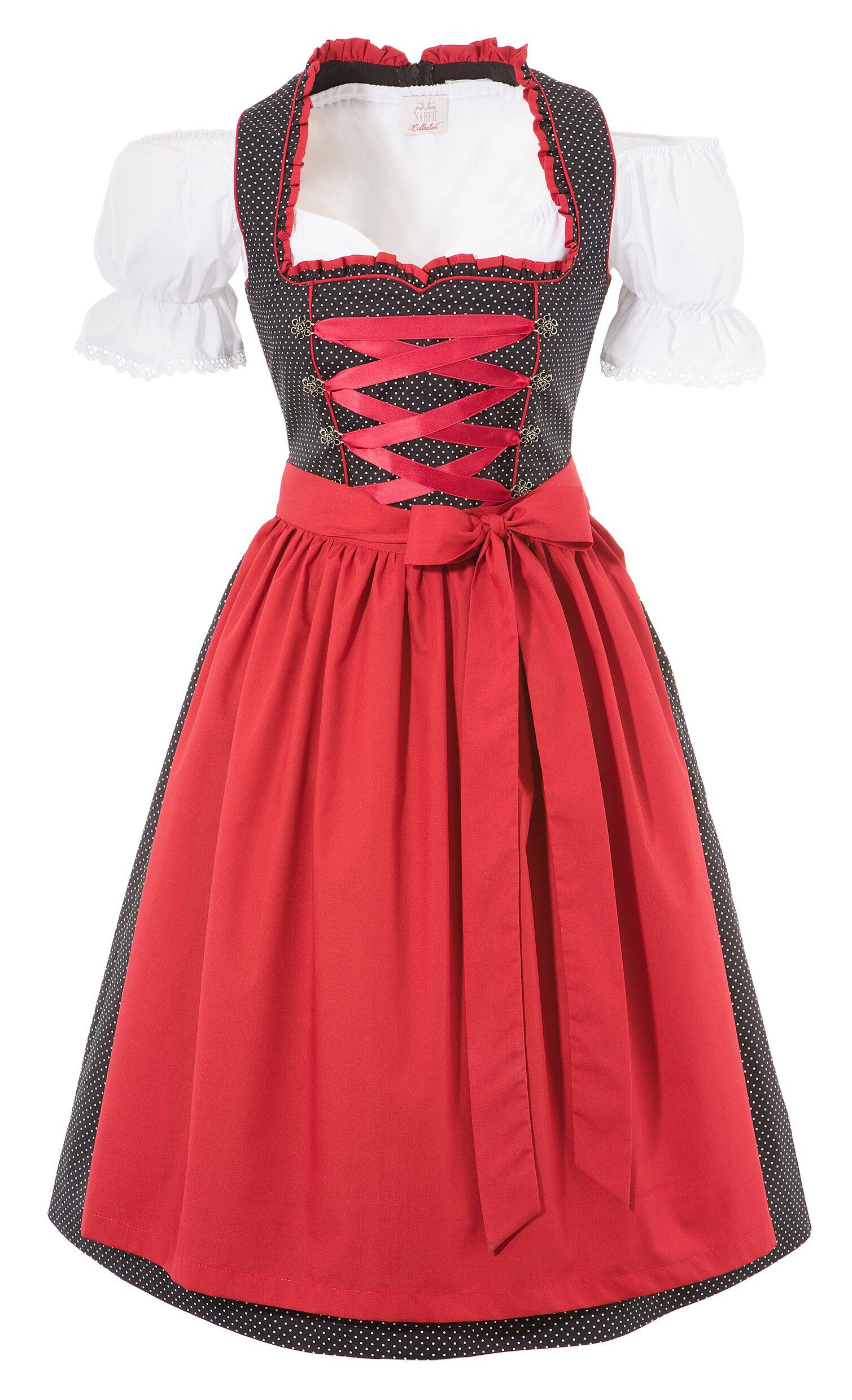 • Dirndl Damen Lang Aus Samt | Komplett-Set Mit Schürze | Oktoberfest Trachtenkleid