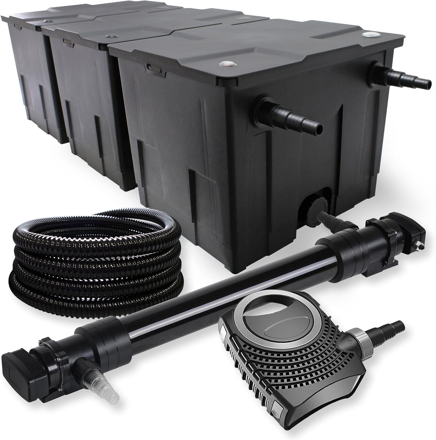 Boah, für alle Teichbesitzer mit großen Gewässern ist dieses SunSun Komplettset genau das Richtige! Das Set ist perfekt für Teiche bis 90.000 Liter und bringt alles mit was du brauchst: Den CBF-350C Bio-Teichfilter mit 3-Kammer-System, einen starken 24W UVC-Klärer gegen Algen und eine super effiziente NEO7000 Teichpumpe die bei nur 50W satte 7000 Liter pro Stunde schafft. Dazu noch 25 Meter Teichschlauch - also wirklich komplett! Der UVC-Klärer hat ein cleveres Design mit Edelstahl-Spiegel der die UV-Strahlung reflektiert und so doppelt wirkt. Einfach zu warten und super zuverlässig. Damit hast du garantiert kristallklares Wasser und gesunde Fische. Ob du einen Fischteich hast oder einfach nur klare Sicht genießen willst - mit diesem Set machst du alles richtig. Einfach aufbauen und den ganzen Sommer über freuen!