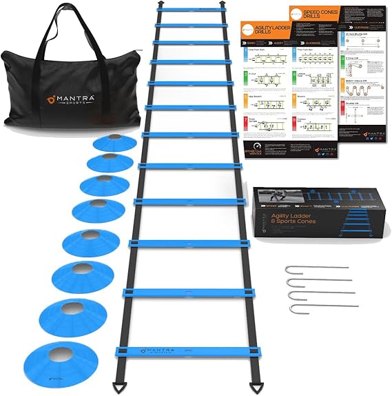Das komplette Fußball-Training für zu Hause! Dieses Set hat alles, was du für professionelles Training brauchst: Eine 8 Meter lange Koordinationsleiter mit 16 Sprossen für schnelle Beinarbeit, 16 bunte Hütchen zum Slalomlaufen und Markieren, einen Widerstandsfallschirm für Sprinttraining und 5 verschiedene Widerstandsbänder für Kraftaufbau. Alles verpackt in einer praktischen Tragetasche - ideal für Training im Park, Garten oder Verein! Die Leiter wird mit Stahlstiften am Boden befestigt - verrutscht nicht! Der Fallschirm ist verstellbar und mit Klick-Verschluss - einfach umschnallen und loslaufen! Perfekt für Fußballer, Leichtathleten, Tennis-Spieler - eigentlich für alle Sportarten, bei denen Schnelligkeit und Beweglichkeit wichtig sind. Ob für Kinder, Jugendliche oder Erwachsene - hier kann jeder sein Training verbessern! Einfach aufbauen und sofort mit dem Training starten - deine Leistung wird sich garantiert verbessern!