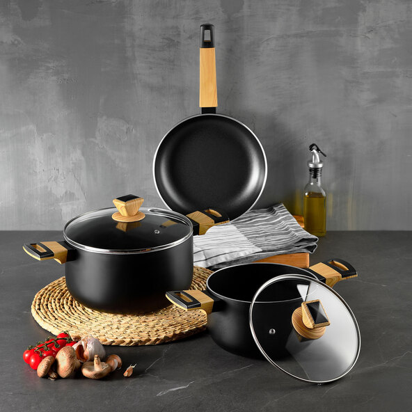 Kochbegeisterte aufgepasst! Dieses 5-teilige Antihaft-Kochgeschirr Set von Kordisen macht das Kochen zum Vergnügen. Enthalten sind: 24 cm Kasserolle mit Deckel, 16 cm und 20 cm Stieltöpfe mit Deckel, sowie 24 cm und 28 cm Bratpfannen - alles, was du für den Küchenalltag brauchst. Die super Antihaft-Beschichtung ist komplett PFOA- und PFAS-frei, also absolut gesundheitlich unbedenklich. Du brauchst kaum Öl, alles brät sich super leicht an und lässt sich einfach reinigen. Kompatibel mit allen Herdarten - Induktion, Gas, Ceran, Elektro. Die hitzebeständigen Bakelit-Griffe bleiben kühl und sind angenehm in der Hand. Die doppelten Ausgießer machen das Abgießen zum Kinderspiel. Einfach abspülen oder abwischen - schon ist die Pfanne wieder sauber. Von Eiern bis Steak - mit diesem Set gelingt alles perfekt!