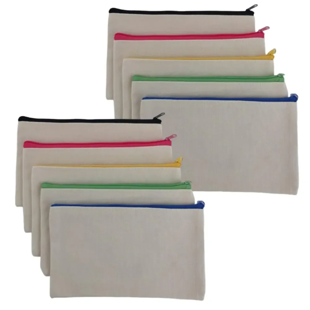Kreative Köpfe aufgepasst! Dieses 10er-Set leerer Kosmetiktaschen ist perfekt für alle DIY-Projekte. Die Taschen aus robustem Leinenstoff (ca. 21x13cm) in Weiß sind ideal für Sublimation, aber auch zum Bemalen, Bedrucken oder Besticken geeignet. Jede Tasche hat einen zuverlässigen Reißverschluss und wird mit einem praktischen Nylon-Armband geliefert, das mit einem Metall-Haken leicht abnehmbar ist. So kannst du die Tasche bequem am Handgelenk tragen, wenn deine Hände voll sind. Vielseitig einsetzbar nicht nur als Kosmetiktasche, sondern auch als Stiftetasche, Reiseetui oder für kleine Accessoires. Lass deiner Kreativität freien Lauf und gestalte einzigartige, persönliche Taschen für dich oder als Geschenk!