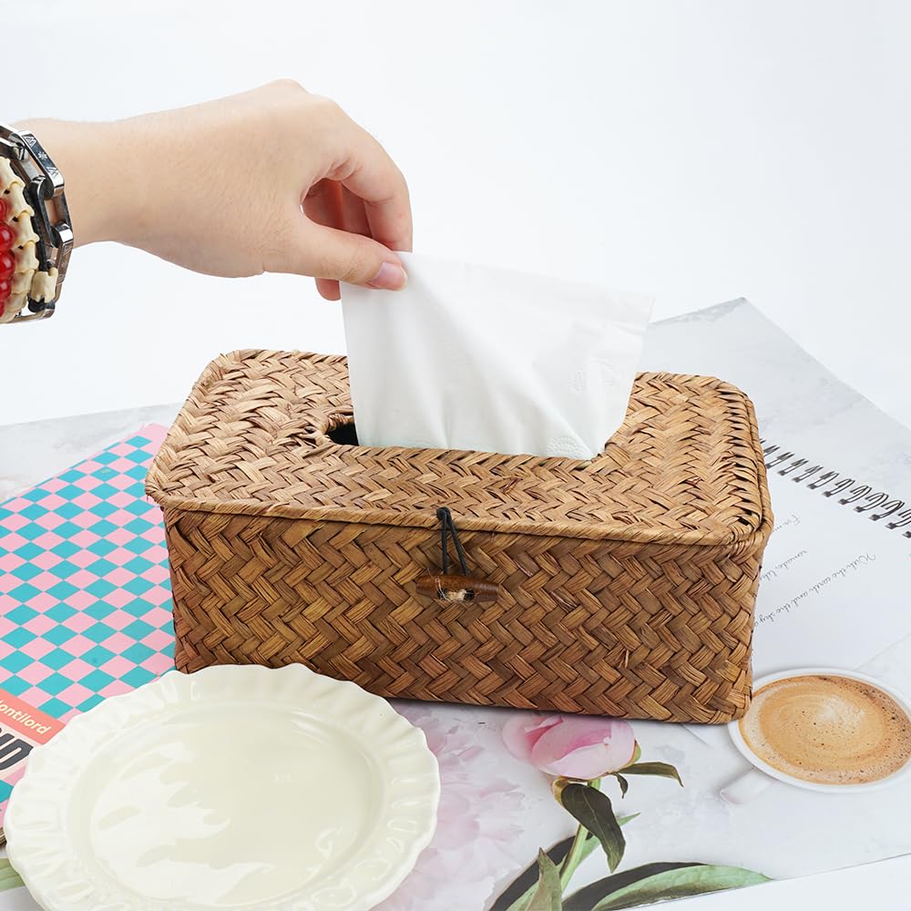 Natürliche Ordnung für dein Badezimmer! Diese handgeflochtene Kosmetiktuchbox aus Seegras sieht nicht nur toll aus, sondern ist auch super praktisch. Maße: 17x13x8cm, perfekt für Kosmetiktücher oder Servietten. Der elastische Deckel hält die Tücher sicher an Ort und Stelle. Das rustikale Design passt zu Landhaus- und modernen Einrichtungsstilen. Ökologisches Material, langlebig und stabil. Ein hübscher Hingucker für Bad, Wohnzimmer oder Büro - Ordnung halten war noch nie so schön!
