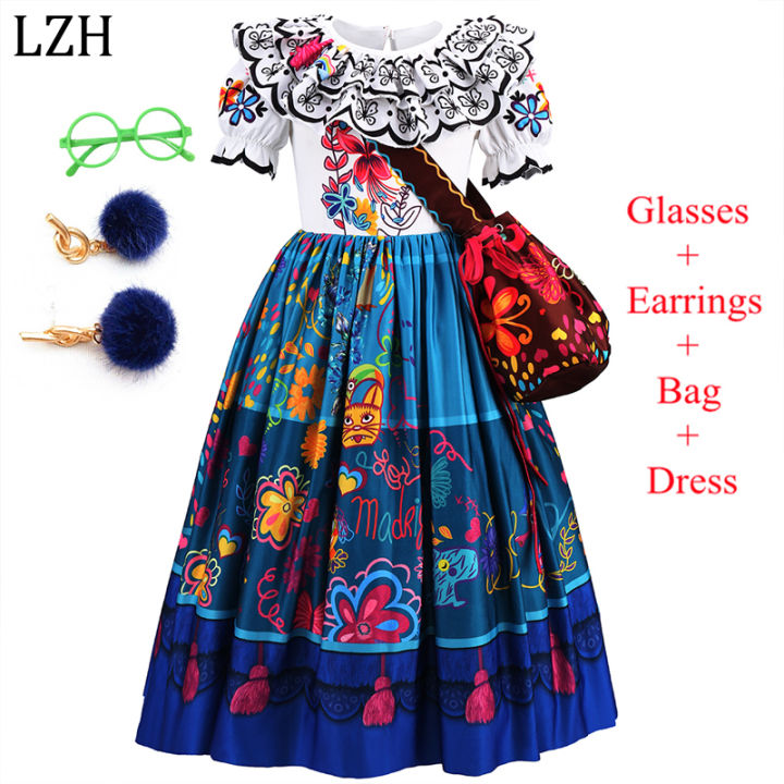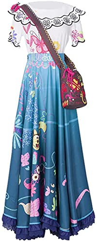 Ab in die magische Welt von Encanto! Dieses detailgetreue Mirabel Kostüm lässt Mädchen-Träume wahr werden. Das Kleid ist eine fast 100%ige Nachbildung des Originals - mit rundem Nacken, einzigartigen Ärmeln und knallbunten Mustern. Im Set enthalten: Kleid, Tasche, Brille und Ohrringen - also alles für den kompletten Look! Perfekt für Halloween, Karneval, Themenpartys, Schulaufführungen oder einfach zum Verkleisen zu Hause. Das Rückenknopf-Design macht das Anziehen einfach. Aus weichem Material für hohen Tragekomfort. Ein super Geschenk für alle Encanto-Fans! Wichtig: Am besten von Hand in kaltem Wasser waschen, damit die Farben lange schön bleiben. Damit wird deine Kleine zum Star jeder Party!