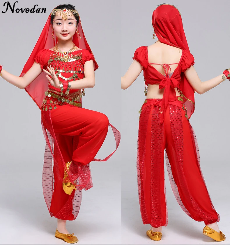 Hey! Dieses wunderschöne Bauchtanz-Kostüm-Set verwandelt deine Kleine in eine echte Prinzessin aus 1001 Nacht! Das zweiteilige Outfit besteht aus einem süßen Bauchtanz-Top mit Neckholder und einer weiten Chiffon-Hose mit bequemem Gummizug. Besonders cool: Der mitgenähte Münzgürtel und der Kopfschmuck mit Schleier - bei jeder Bewegung glitzert und klimpert es wunderschön! Perfekt geeignet für Bauchtanz-Unterricht, Tanzaufführungen, Karneval, Halloween oder Mottopartys. Das Top lässt sich hinten schnüren und passt sich so perfekt an, während die Hose dank des weiten Schnitts super bequem sitzt und nicht rutscht. Dein Kind wird sich wie eine echte Bauchtänzerin fühlen! Ob für die nächste Tanzklasse, eine Geburtstagsparty oder einfach nur zum Verkleiden zu Hause - mit diesem komplettem Set machst du garantiert eine super Figur. Die Qualität ist top und die Verarbeitung sorgt dafür, dass das Kostüm auch bei intensiver Nutzung lange hält. Einfach anziehen und den magischen orientalischen Flair genießen!