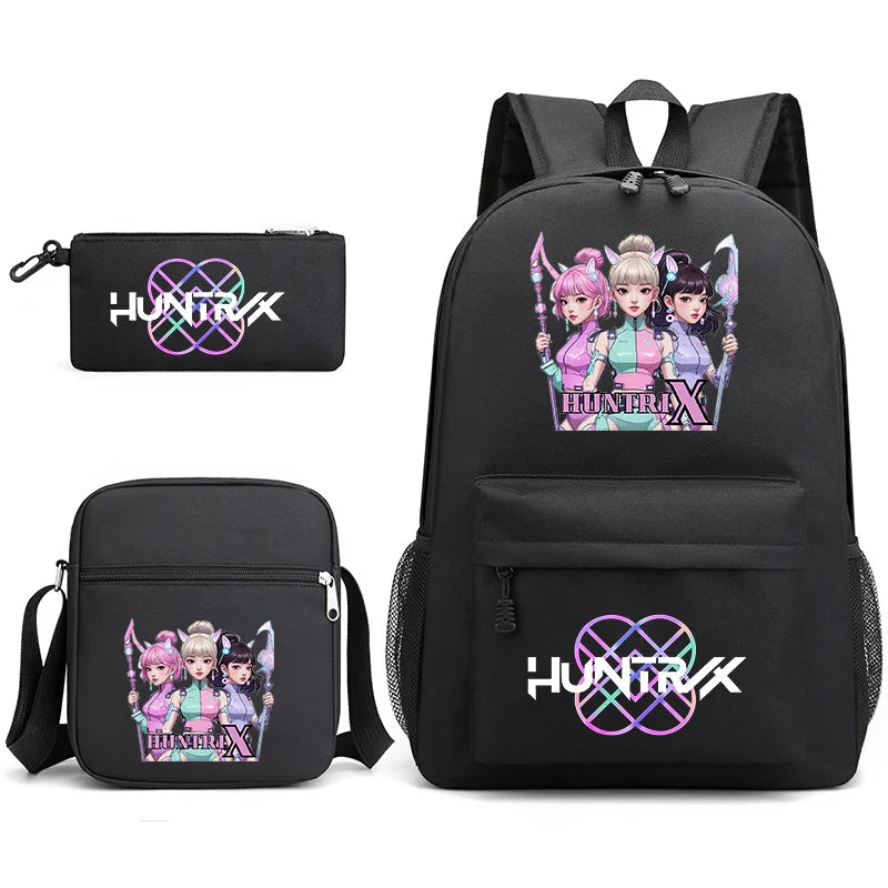 Für alle Kpop- und Anime-Fans da draußen - dieses 3-teilige Rucksack-Set ist einfach nur mega cool! Der Rucksack selbst ist mit den angesagten Demons Hunters Charakteren bedruckt und bietet jede Menge Stauraum für alle Schulsachen. Dazu gibt's eine praktische Umhängetasche für dein Handy, Geldbeutel und andere wichtige Kleinigkeiten, und ein passendes Federmäppchen, in dem alle Stifte ordentlich Platz finden. Das Design ist total im Trend - bunt, auffällig und einfach nur stylisch. Perfekt für die Schule, für Reisen, für Konzerte oder einfach für den täglichen Gebrauch. Die Qualität ist robust, die Reißverschlüsse laufen super smooth und die Trageriemen sind bequem gepolstert. Egal ob Junge oder Mädchen - mit diesem Set zeigst du allen, wo deine musikalischen und künstlerischen Vorlieben liegen. Und das Beste: Du hast alles zusammen, was du brauchst - Rucksack, kleine Tasche und Federmäppchen in einem einheitlichen Design. Einfach perfekt!