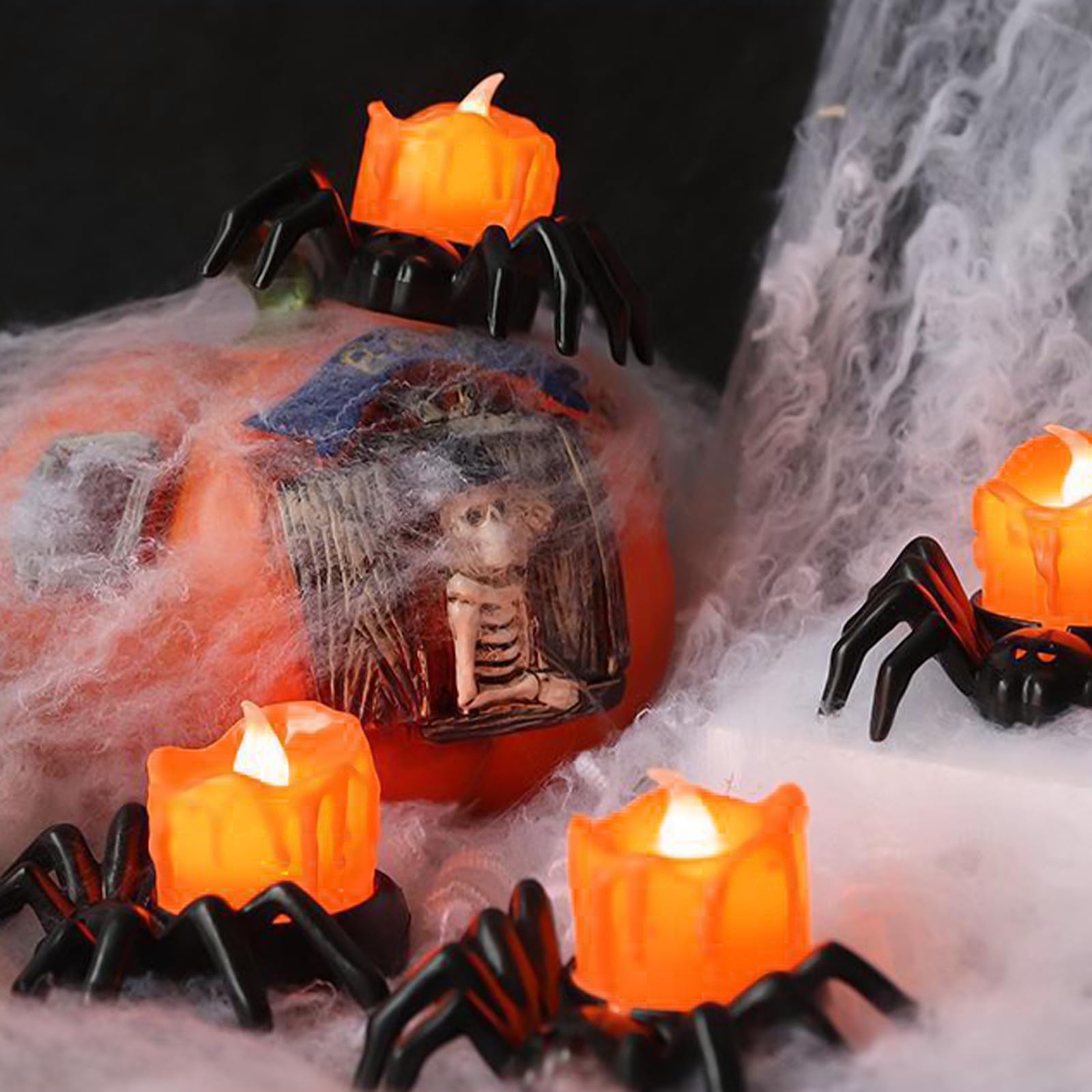 Gruselstimmung garantiert! Diese 4 LED-Kerzen mit Halloween-Motiven wie Krähen, Spinnen und Burgen sorgen für perfekte Grusel-Atmosphäre. Ohne echte Flamme - absolut sicher für innen. Jede Kerze benötigt 2 AA-Batterien (nicht im Lieferumfang). Einfach den Schalter an der Unterseite umlegen und schon erleuchten die gruseligen Motive. Aus hochwertigem Kunststoff, jede Kerze 6,3cm Durchmesser und 18cm hoch. Perfekt für die Halloween-Party, als Tischdekoration oder zur gruseligen Raumgestaltung. Auch für Balkon, Garten oder Camping-Partys geeignet. Mit diesem Set wird deine Halloween-Feier unvergesslich!
