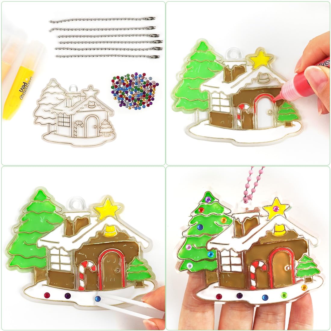 Suchst du kreativen Bastelspaß für deine Kinder? Dieses 12-teilige DIY Kristall-Mal-Set ist perfekt für Weihnachten! Im Set findest du 12 verschiedene Kristall-Mal-Vorlagen, 12 Schlüsselanhänger, 8 bunte Farben, 2 Glitzerfarben, bunte Diamanten und eine Pinzette. Alles aus hochwertigem Material - die Acryl-Vorlagen brechen nicht leicht und sind ideal für kleine Kinderhände. Deine Kinder können ihrer Kreativität freien Lauf lassen und dabei ihre Feinmotorik und Farbwahrnehmung verbessern. Einfach die Lieblingsfarben auswählen, die Vorlagen bemalen und mit den funkelnden Diamanten verzieren! Trocknen lassen - und schon ist das Kunstwerk fertig. Perfekt als Weihnachtsgeschenk, Geburtstagsüberraschung oder einfach für einen kreativen Nachmittag. So macht Basteln Spaß!