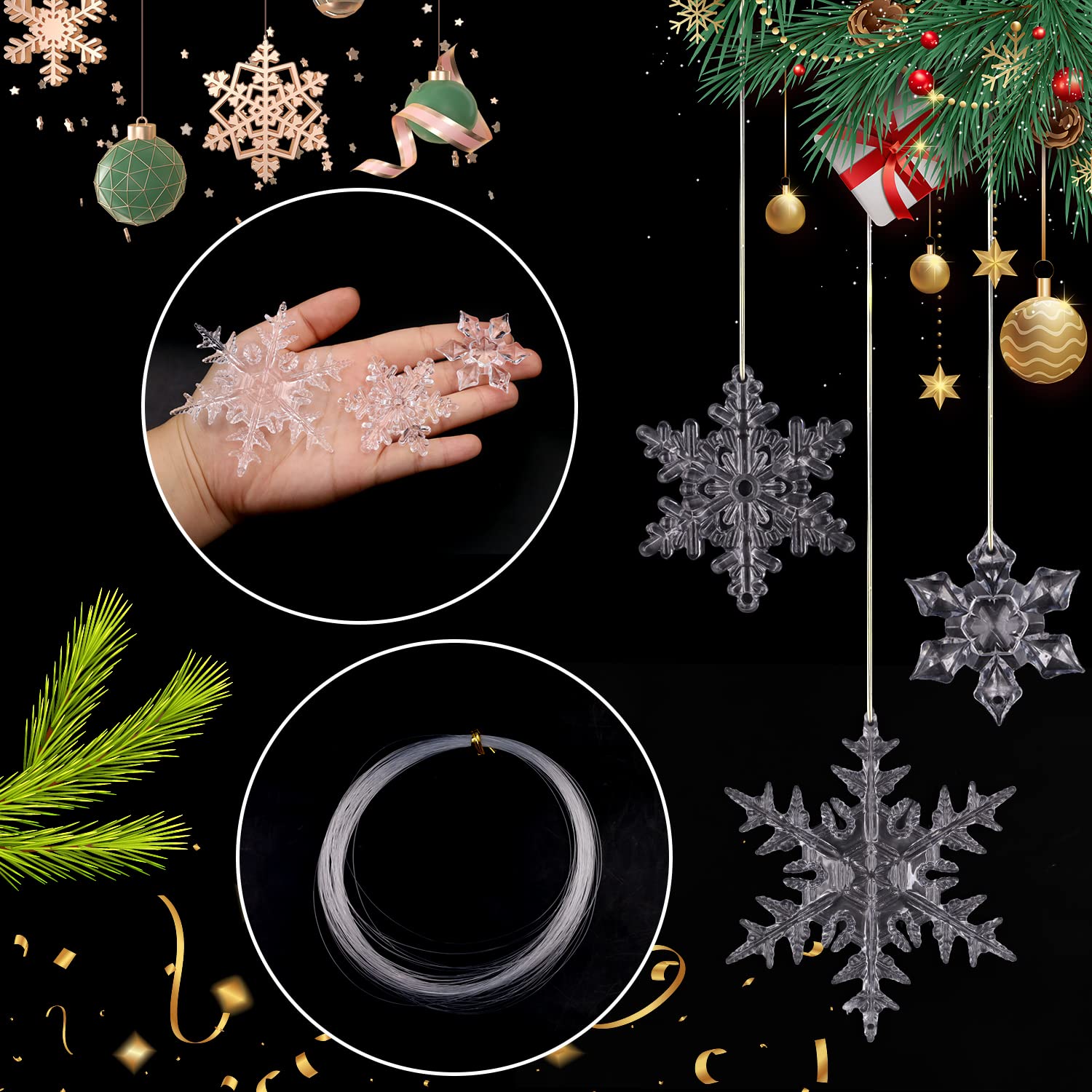 Winterliche Atmosphäre für dein Zuhause! Diese 40 klaren Acryl-Schneeflocken in 3 Größen verwandeln deinen Weihnachtsbaum in ein funkelndes Winterwunderland. Splitterfrei und sicher für Kinder und Haustiere. Mit mitgelieferten Aufhängeschnüren - einfach aufhängen und staunen. Perfekt für Baum, Fenster oder Kränze. Mach deine Weihnachtsdekoration unvergesslich!