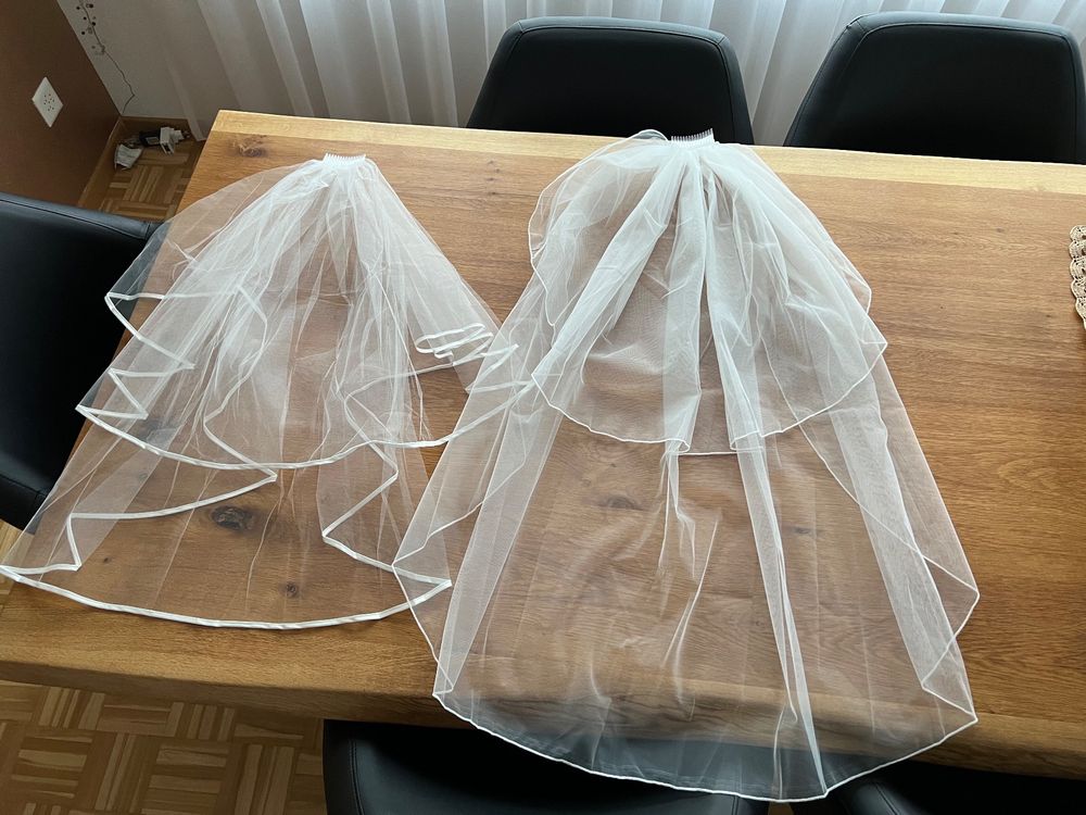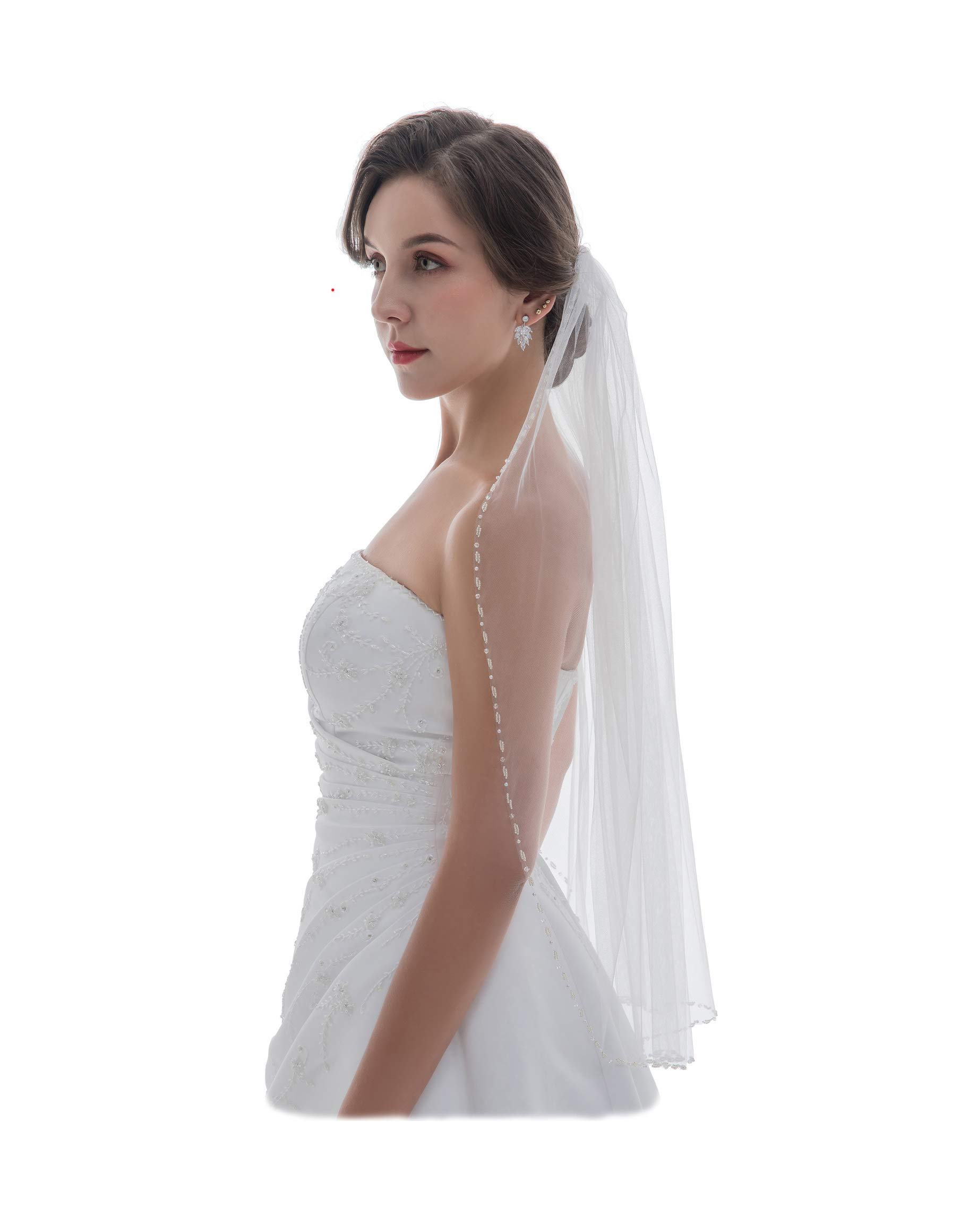 Wow, dieser Brautschleier von SAMKY ist einfach traumhaft! In zartem Elfenbein mit feinen Kristallperlen besetzt - das sieht so edel aus. Er hat zwei Stufen: 25 Zoll und 30 Zoll, also schön viel Schleier für den großen Auftritt. Die Breite von 72 Zoll sorgt für richtig voluminösen Look. Der Rand ist mit Band abgesetzt und überall sind diese niedlichen Diamant-Kristalle verteilt. Der Kamm ist aus flexiblem Metalldraht, der hält bombenfest im Haar. Achtung: Nur der Schleier ist dabei, keine Tiara oder anderer Schmuck. Aber der alleine macht schon was her - da fühlst du dich wie eine echte Prinzessin!