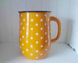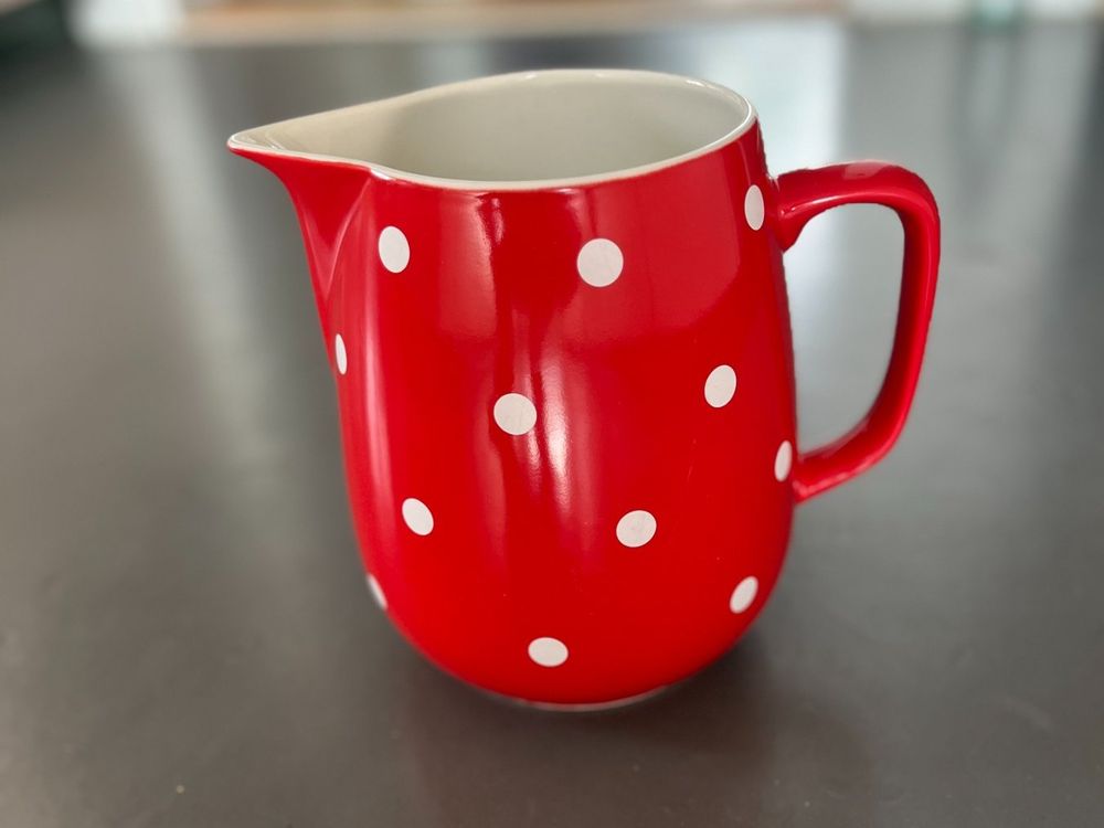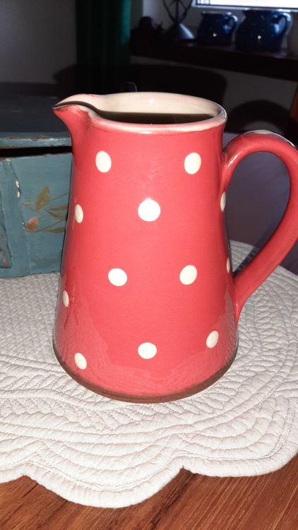 Wow, dieser handgemachte Keramikkrug ist einfach der Hit für alle, die es gemütlich lieben! Mit seinen 1,2 Litern Fassungsvermögen ist er perfekt für Wasser, Limo oder sogar als stylische Vase. Der knallige Rottom mit den verspielten weißen Punkten bringt sofort Landhaus-Flair auf deinen Tisch. Jedes Stück ist ein Unikat - richtig mit Hand bemalt und bei 990°C gebrannt, damit er auch was aushält. Die dicke Glasur macht ihn super kratzfest und alltagstauglich: ab in die Spülmaschine oder den Kühlschrank damit! Maße: 18 cm hoch, 13,5 cm Durchmesser. Hergestellt in der EU - Qualität, die man sieht und spürt. Perfekt für entspannte Familienessen, sommerliche Gartenpartys oder einfach als Hingucker in der Küche. Übrigens: Die kräftige Farbe verblasst nicht, und die praktische Größe passt auch voll in die Kühlschranktür!