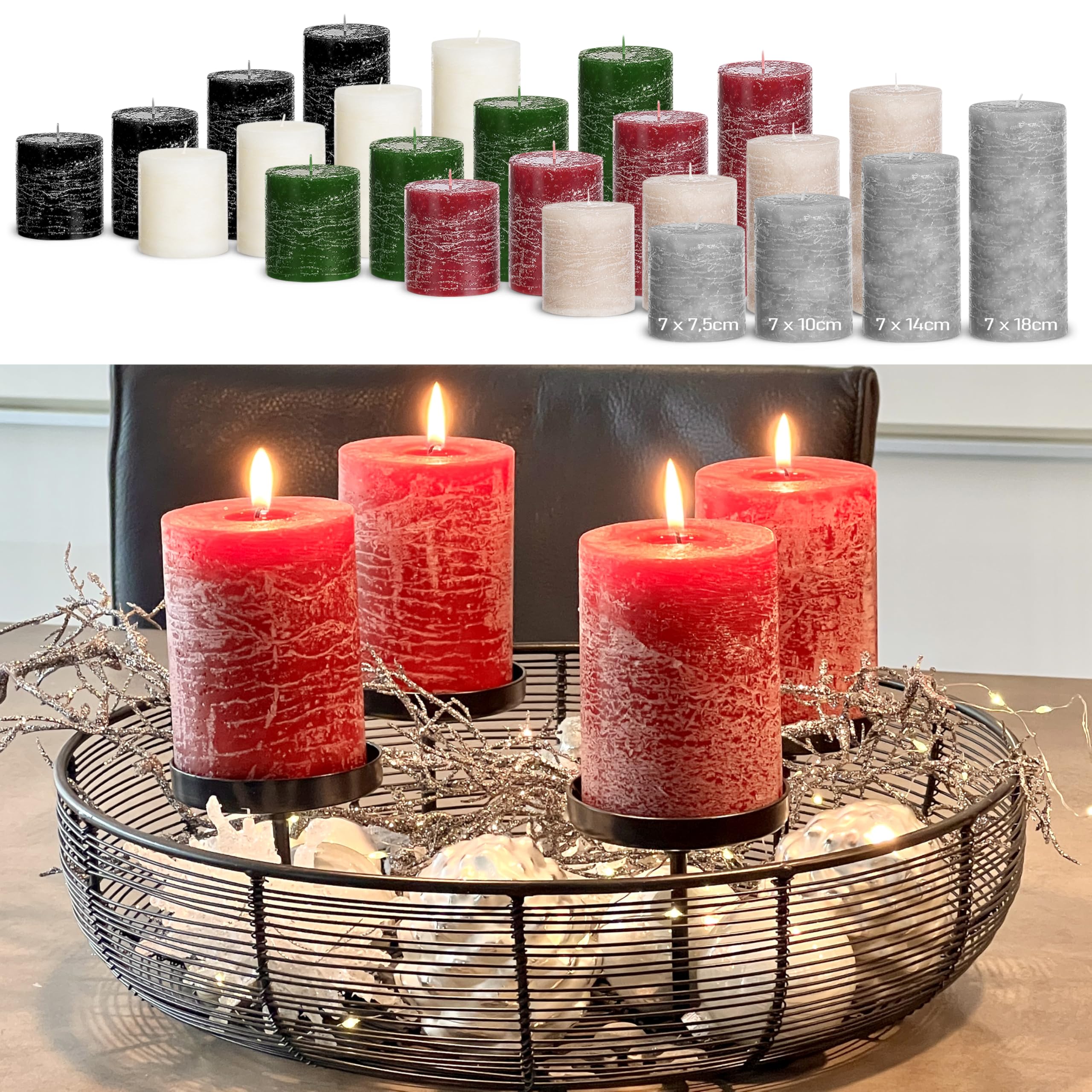 Gemütliche Stimmung garantiert! Diese bezaubernden Kugelkerzen im 4er Set bringen warmes Licht in dein Zuhause. Mit 9cm Durchmesser und rustikaler Optik sind sie perfekt für Adventskränze, Tischdekoration oder einfach für gemütliche Abende. 🕯️\n\nHergestellt aus hochwertigem Paraffin und komplett durchgefärbt, behalten die Kerzen auch beim Abbrennen ihre schöne Farbe. Sie brennen gleichmäßig und lange ab - ohne zu tropfen oder zu rußen.\n\nOb zu Weihnachten, auf der Geburtstagstafel oder einfach nur für mehr Gemütlichkeit im Wohnzimmer - diese Kerzen sorgen immer für die richtige Atmosphäre. Einfach anzuzünden und zu genießen!\n\n✅ 4 Kugelkerzen im Set - perfekte Menge\n✅ 9cm Durchmesser - ideale Größe\n✅ Durchgefärbtes Paraffin - bleibende Farbe\n✅ Gleichmäßige Brenndauer - ohne Tropfen\n✅ Rustikales Design - passt zu jedem Stil\n✅ Vielseitig einsetzbar - für viele Anlässe\n\nFür alle, die gemütliche Atmosphäre lieben - ob für festliche Anlässe oder einfach nur für einen entspannten Abend zu Hause!
