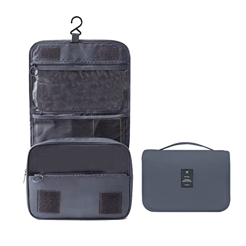 Perfekt organisiert auf Reisen! Diese praktische Kulturtasche für Herren hat alles, was du unterwegs brauchst. Mit den Maßen 27,5x20x10 cm ist sie groß genug für alle Hygieneartikel, aber dennoch kompakt genug fürs Handgepäck.\n\nDas clevere Innenlayout bietet 2 große Fächer für Rasierer, Handtücher und Duschgel, plus 2 kleine Fächer für Zahnbürste, Kamm und andere Kleinigkeiten. Das Netzfach hilft dir, alles schnell zu finden.\n\nSuper praktisch: Der integrierte Aufhängehaken ermöglicht dir, die Tasche im Hotelbadezimmer oder auf dem Campingplatz bequem aufzuhängen. So hast du alles im Blick und musst nicht lange suchen.\n\nDas wasserdichte Material schützt deine Sachen vor Feuchtigkeit, und mit nur 200g Gewicht ist die Tasche angenehm leicht. Die doppelten Tragegriffe schonen deine Hände, und der hochwertige Doppelreißverschluss öffnet und schließt problemlos.\n\nIdeal für Geschäftsreisen, Urlaub, Camping oder Sport - und ein tolles Geschenk zum Vatertag oder Geburtstag!
