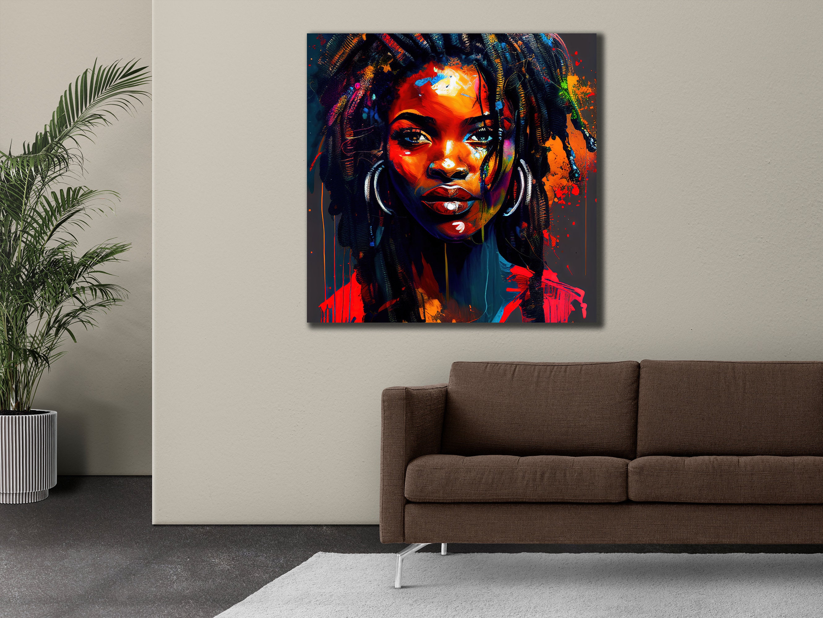 Graffiti Kunst Leinwanddruck - Afrikanische Frau Mit Buntem Haar 80x120cm