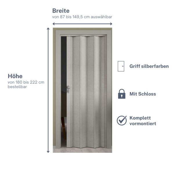 Platzsparend und praktisch! Diese weiße Falttür aus Kunststoff ist die perfekte Lösung für beengte Räume. Mit 203cm Höhe und bis zu 103cm Einbaubreite passt sie in fast jede Wohnung, Küche oder jedes Büro. 🚪 Die Tür ist aus hochwertigem PVC mit 6mm starken Paneelen gefertigt und kommt vormontiert - du musst sie nur noch einhängen! Der doppelte Magnetverschluss sorgt für sicheren Halt, während das doppelwandige Profil für Stabilität sorgt. Besonders praktisch: Die Tür ist in Höhe und Breite kürzbar! So passt du sie genau deinen Raummaßen an. Die Lamellen haben eine Breite von ca. 11cm und geben der Tür ihr charakteristisches Aussehen. Im Lieferumfang ist alles enthalten, was du für die Montage brauchst: Tür, Rahmen und Führungsschienen. Perfekt für Innen- und Außenbereiche, extrem pflegeleicht und langlebig. Einfach bestellen, montieren und sich über mehr Platz freuen!