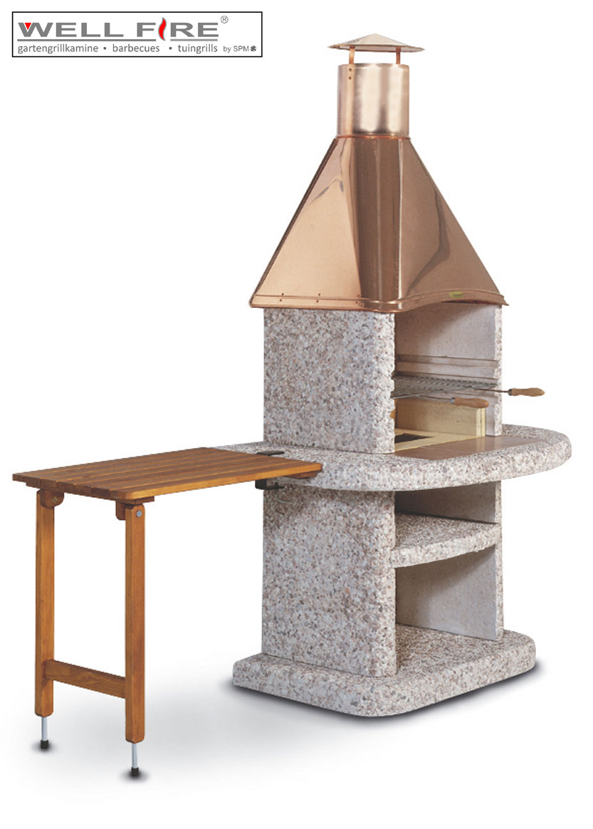 Wow, was für ein Blickfang! Dieser Wellfire Toskana Grillkamin mit edler Kupferhaube macht deinen Garten zum absoluten Highlight. Mit stolzen 182cm Höhe und 110cm Breite ist er ein richtiger Hingucker. Aus eisenverstärktem Beton mit rot-weißem Natursplitt, wassergestrahlt für eine tolle Optik. Die Kupferhaube verleiht ihm das besondere Etwas. Grillfläche von 53x38cm - perfekt für gemütliche Grillabende. Im Lieferumfang sind Edelstahl-Grillrost, Aschekasten, Schamottsteine und alles Weitere schon dabei. Das Stecksystem macht den Aufbau einfach - kein Mörtel nötig. Bei 440kg Gewicht steht er bombenfest. Einmal aufgebaut, hast du jahrelang Freude daran!