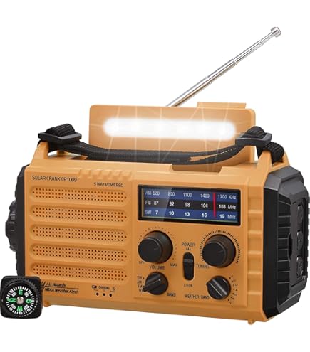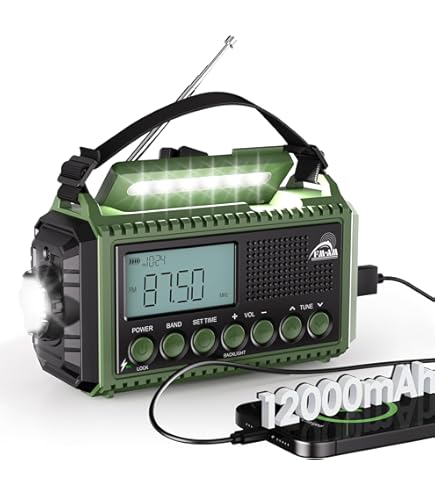 Für alle Notfälle gerüstet! Dieses robuste Multifunktions-Radio hat alles, was du brauchst: 20000mAh Akku, Solar- und Kurbel-Ladung, DAB/FM Radio, Bluetooth, Taschenlampe, SOS-Alarm und Handy-Ladefunktion. IP53 spritzwassergeschützt - ideal für Camping, Outdoor oder den Notfallvorrat. Mit TF-Karten-Slot und AUX-Anschluss. Nie wieder ohne Information und Strom! Ein unverzichtbarer Begleiter für Abenteuer und Sicherheit zu Hause.