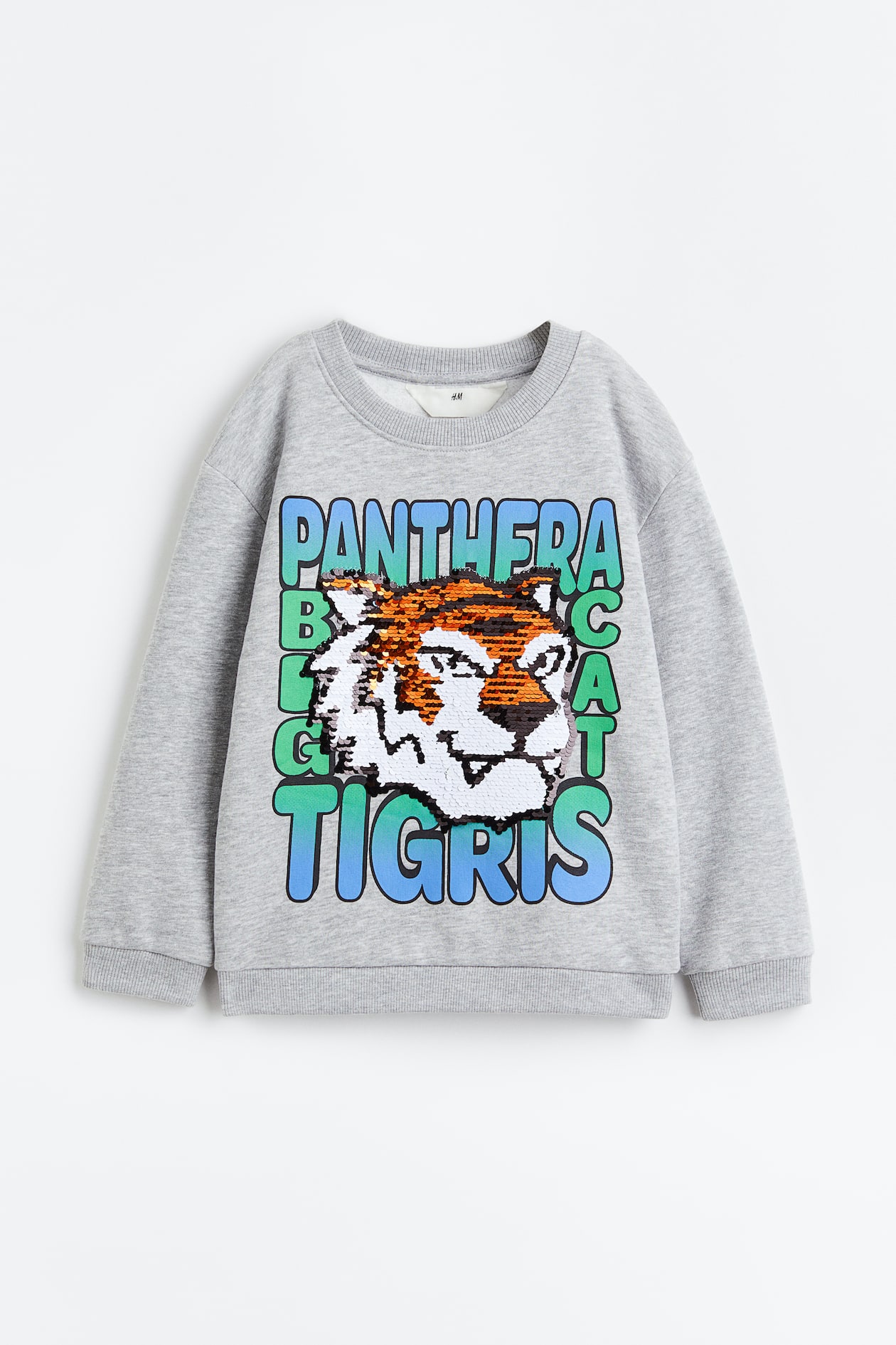 Dieses Sweatshirt ist echt magisch! Mit den coolen Wendepailletten kannst du die Farbe einfach durch Wischen ändern - wie von Zauberhand! Drinnen ist es super kuschelig weich, perfect für kühlere Tage. Der Rundhalsausschnitt mit Rippblende sitzt angenehm und die langen Ärmel mit Rippbündchen halten warm. Regular Fit heißt: sitzt nicht zu eng, nicht zu weit - einfach perfekt! Vorne siehst du einen dezenten Print und der Baumwollmix fühlt sich super auf der Haut an. Ob zu Jeans, Leggings oder Rock - dieses Sweatshirt macht immer was her! Aus guter Sweatware, die auch nach mehrmaligem Waschen noch toll aussieht. Ein echter Hingucker, der garantiert Komplimente bringt! Wische die Pailletten mal hin und her - du wirst sehen, wie viel Spaß das macht!