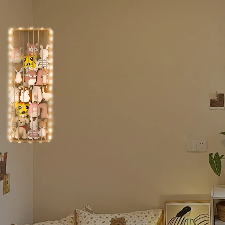 Wow, endlich Ordnung im Kinderzimmer! Dieses coole Kuscheltier-Regal aus Holz nutzt einfach die Ecke aus und spart so mega viel Platz. Das elastische Seil lässt sich von 112 bis 180 cm dehnen - da passen echt viele Stofftiere rein! Aus robustem Holz mit polierten Kanten, also keine Sorge vor scharfen Ecken. Die Montage ist super einfach - alles Nötige ist im Lieferumfang dabei: 2 Holzbretter, Seil, sogar eine kleine Leuchte (braucht 2 AA-Batterien). Deine Kinder finden ihre Lieblingskuscheltiere jetzt blitzschnell, ohne im Schrank wühlen zu müssen. Und das Beste: Es sieht auch noch dekorativ aus! Nicht nur für Stofftiere geeignet, sondern auch für Bälle, Kissen oder Decken. In weiß passt es zu jedem Zimmer. Einfach genial für mehr Ordnung und weniger Chaos!