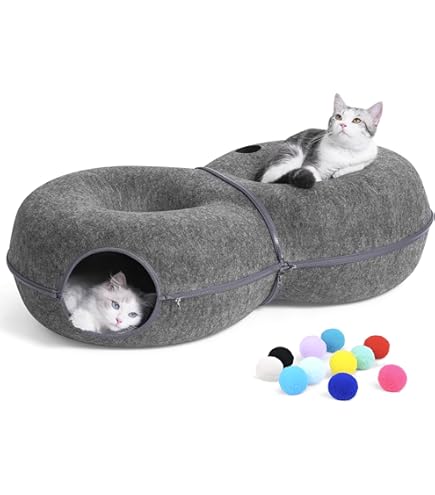 Hey Katzenfans! Dieser coole Filz-Tunnel ist der absolute Hit für eure Stubentiger. In schickem Beige und mit praktischen Gucklöchern in Pfoten- und Kreisform - da kommt garantiert keine Langeweile auf! Eure Katzen können sich verstecken, durch die Löcher lugen oder einfach gemütlich drin dösen. Das Filzmaterial ist superweich und kratzfest, außerdem lässt es sich easy reinigen - einfach mit der Hand ausbürsten. Aufbauen könnt ihr den Tunnel in wenigen Minuten, ganz ohne Werkzeug. Mit 100x30x30 cm bietet er auch größeren Katzen genug Platz zum Toben. Perfekt fürs Wohnzimmer, aber auch platzsparend zusammengefaltet zu verstauen. Material: Hochwertiger Filz • Maße: 100x30x30 cm • Farbe: Beige • Besonderheiten: Gucklöcher in Pfoten- und Kreisform • Aufbau: werkzeuglos • Reinigung: handwaschbar • Ideal für: Wohnungskaten, Spiel und Entspannung