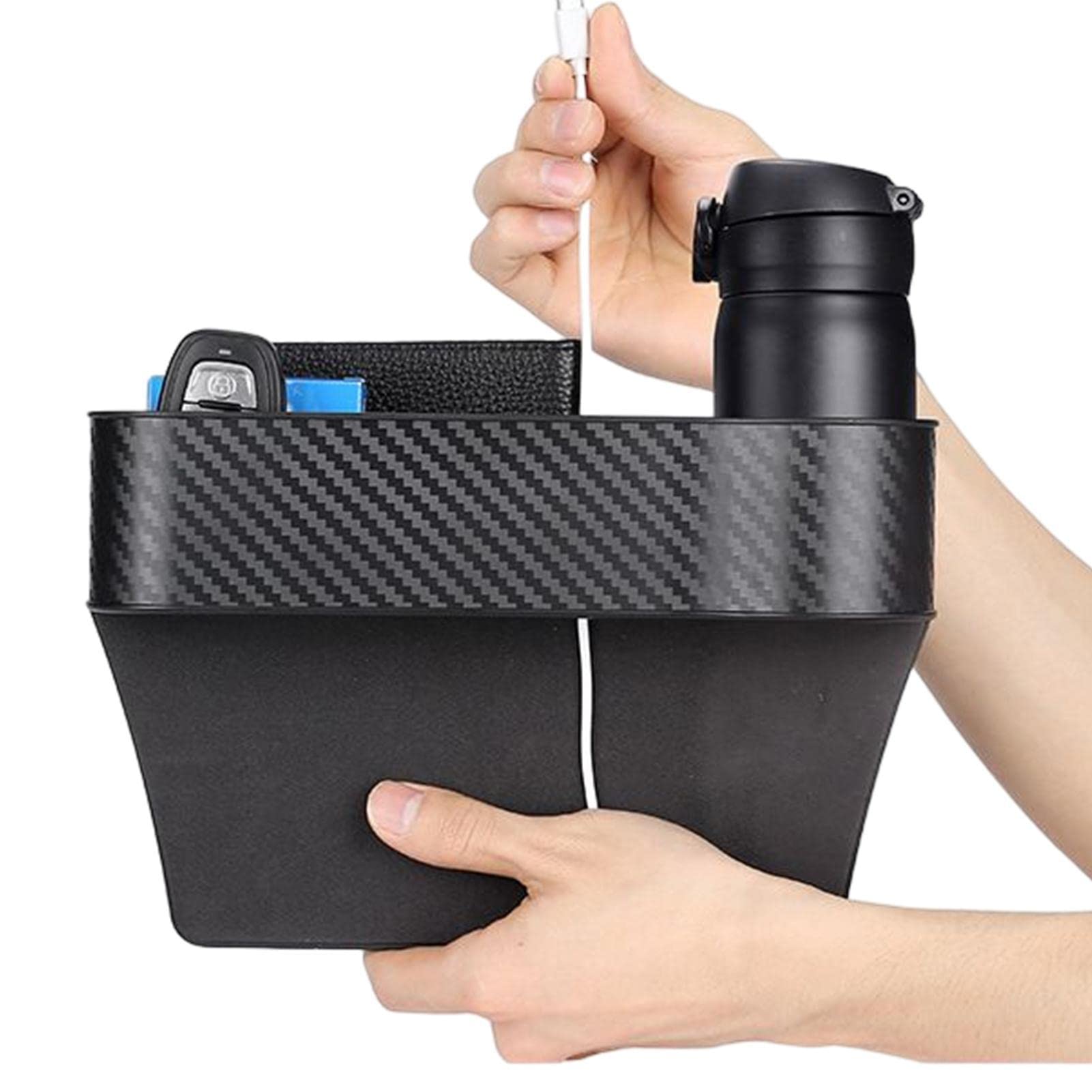 Endlich keine verlorenen Handys oder Schlüssel mehr im Auto! Dieser Lücken-Organizer stopft die blöde Lücke zwischen Sitz und Mittelkonsole. Das 2er Set - je einer für Fahrer und Beifahrer. Hat zwei Fächer: Eins für Handy, Schlüssel, Geld etc., das andere als Getränkehalter. Super clever: Verstecktes Lade-Loch unten für kabelloses Aufladen ohne Kabel-Wirrwarr. Und ein Haken zum Aufhängen von Taschen oder was du so brauchst. Montage in Sekunden - einfach über den Sicherheitsgurtverschluss schieben. Aus hochdichtem TPU-Material, flexibel aber stabil. Passt in die meisten Autos, LKWs und SUVs. Macht das Auto sofort aufgeräumter und praktischer. Für alle, die genug haben vom Suchen und Kramen während der Fahrt!