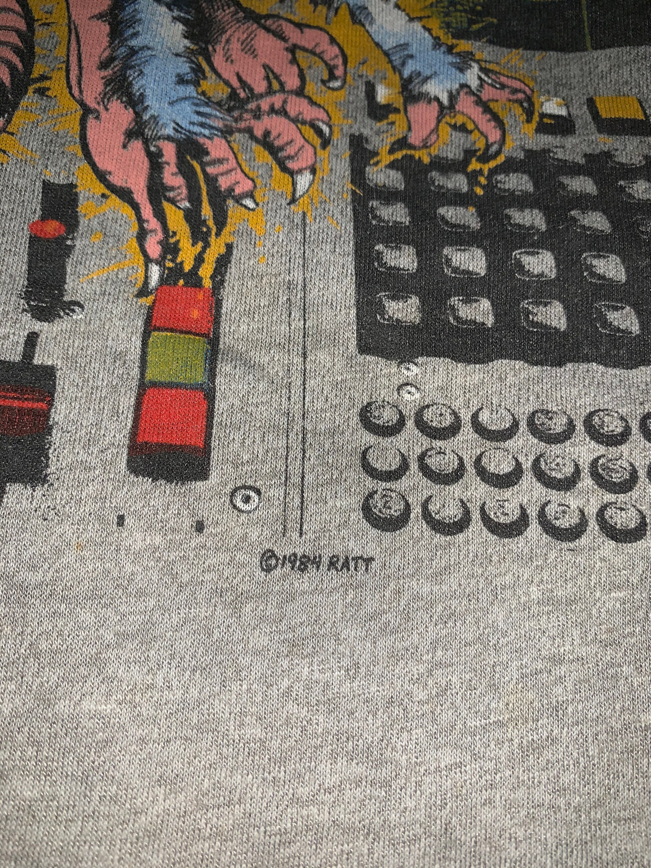 Rock-Legenden auf deiner Brust! Dieses coole RATT T-Shirt zeigt das legendäre LA California 1984 Concert Tour Design. Aus 100% Baumwolle gefertigt, super bequem und angenehm zu tragen. Der klassische Crewneck-Ausschnitt und die kurzen Ärmel machen es zum perfekten Allrounder für jedes Wetter. Doppelt genähter Saum für extra Stabilität - das Shirt hält was aus! Am besten von links waschen bei 30 Grad, dann bleibt der Druck lange schön. Perfektes Geschenk für Rock-Fans, Konzertgänger oder einfach alle, die guten alten Rock mögen. Ob zum Festival, Konzert oder einfach so im Alltag - mit diesem Shirt zeigst du, dass du echten Rock verstehst!